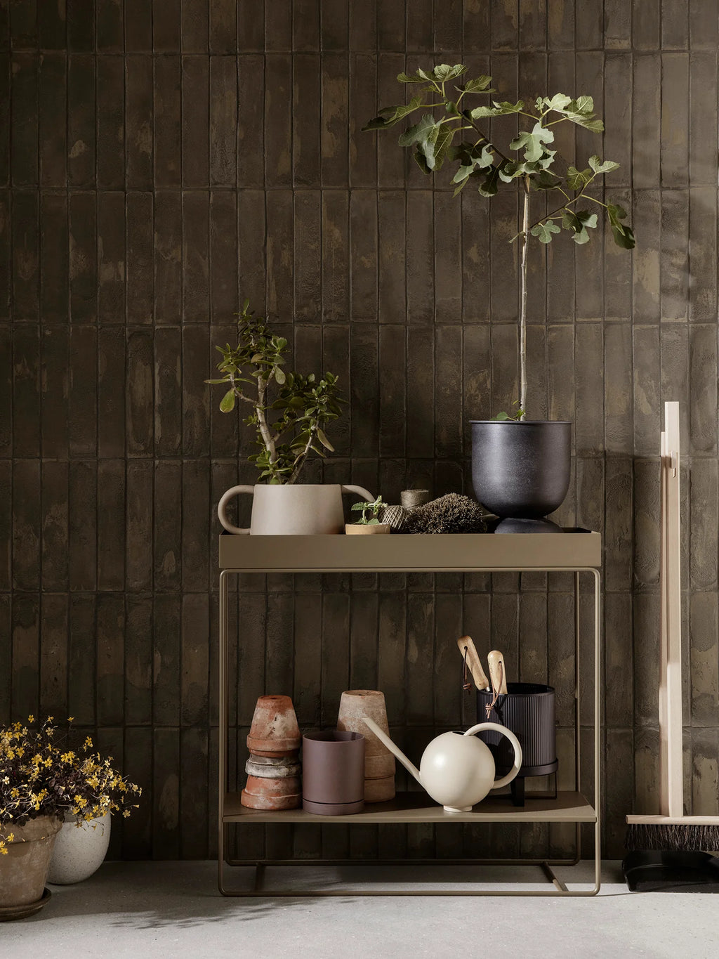 Taking our popular Plant Box to new heights, this two-tier console table has the same sleek lines you recognise from the series, but in an entirely new configuration. The upper tray and the lower shelf are ideal for storing and showing off decorative accessories as well as practical, everyday items such as cups, plates and bottles. The slim silhouette means it will fit into most spaces, as a indoor plant stand or balcony storage solution.