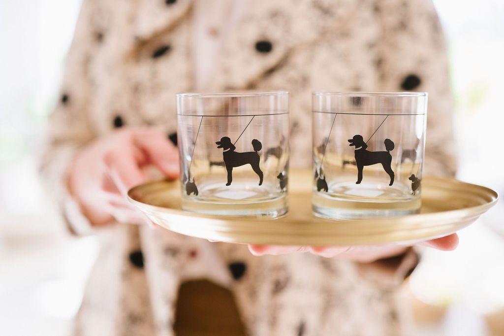 A chic gift idea for canine and cocktail enthusiasts alike because its always yappy hour somewhere. Wrapped in black silhouettes of some of America's best-loved dogs, these fetching Art Deco-inspired rocks glasses are designed to delight, refresh and pair perfectly with your favorite companion.