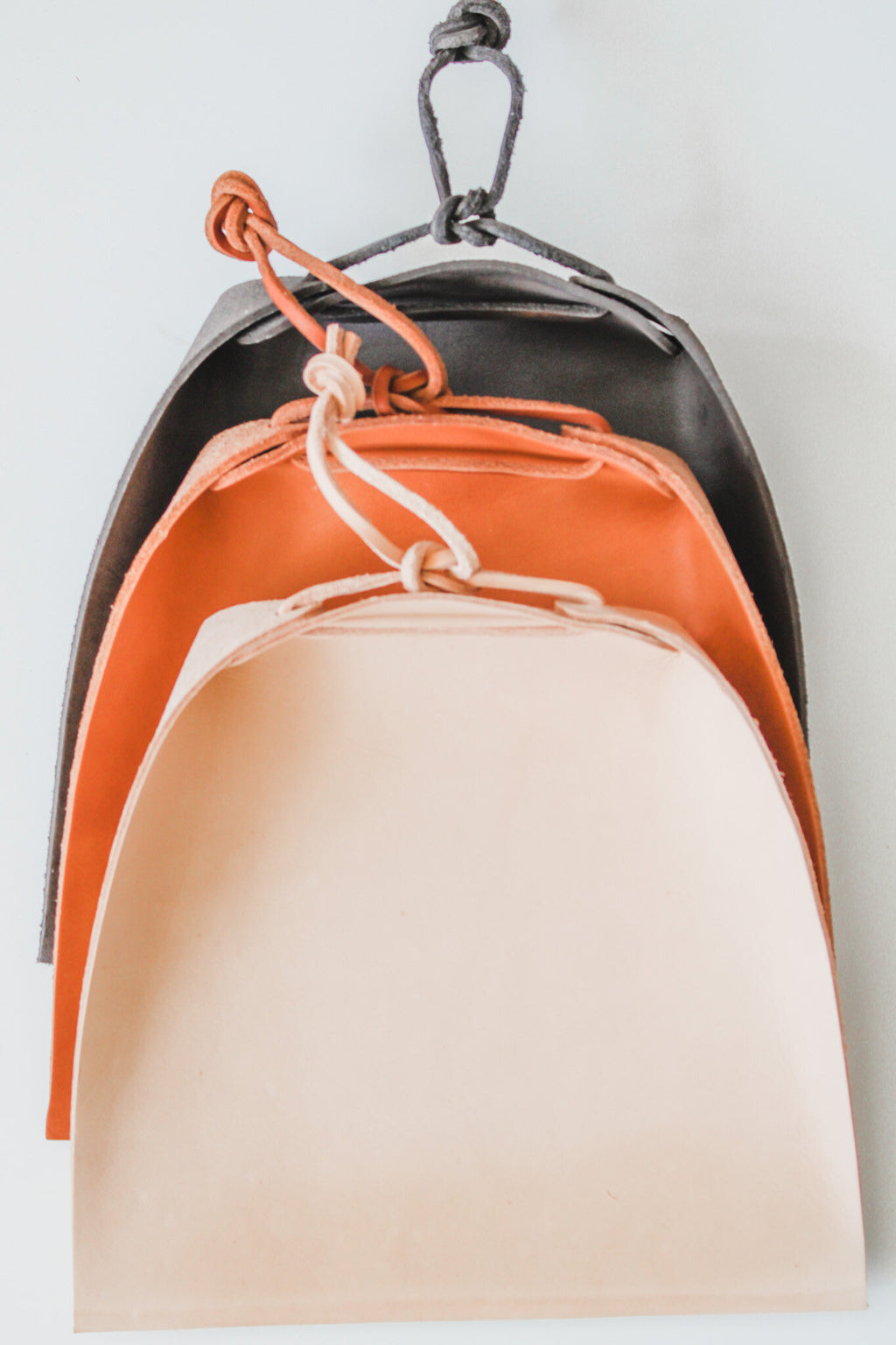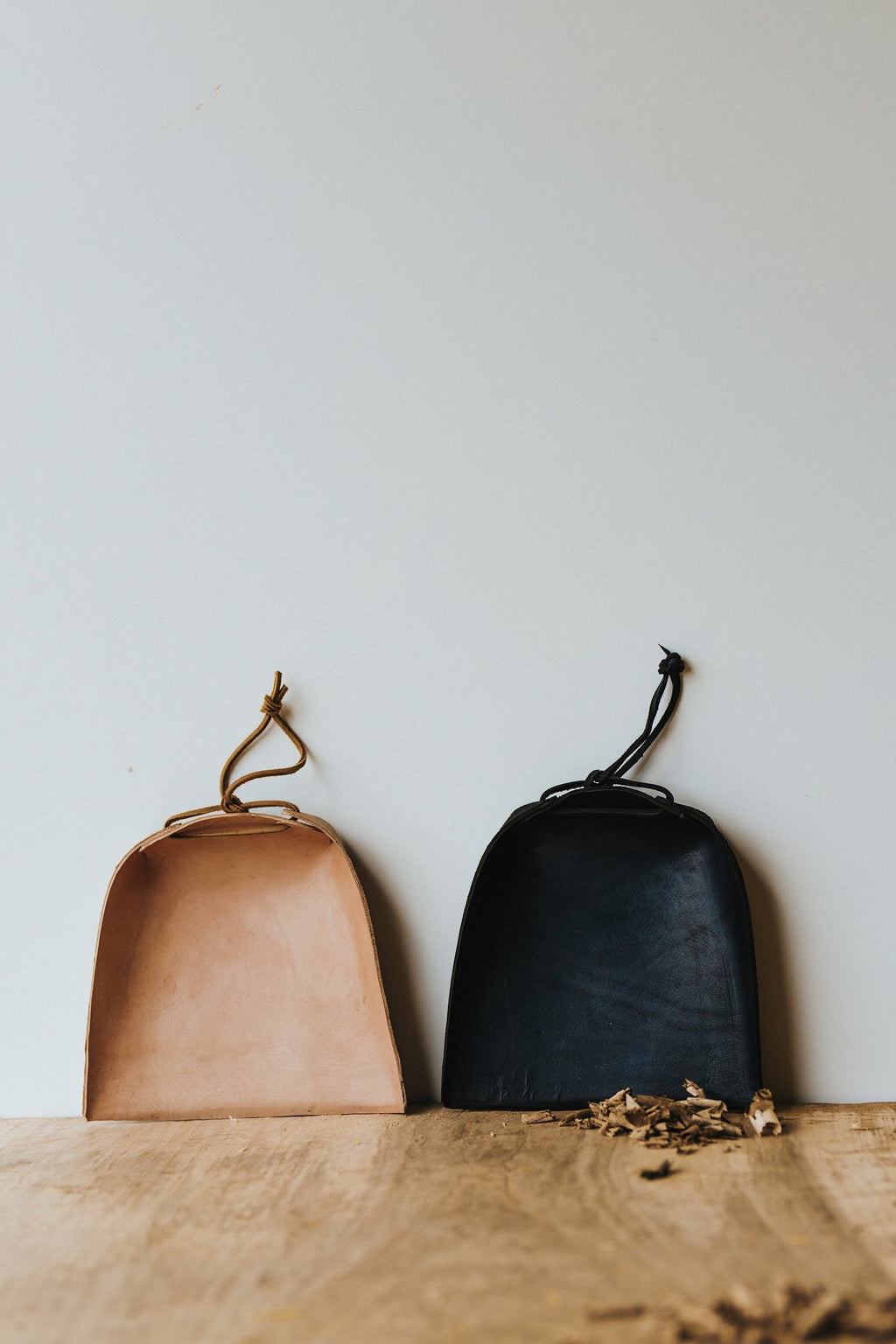 Folded leather dustpan. So happy to finally have a dustpan to match the brooms. Handmade with leather from Thoroughbred leather in Louisville. Available in a natural or black. This is a naturally finished product, and some surface variation is to be expected.