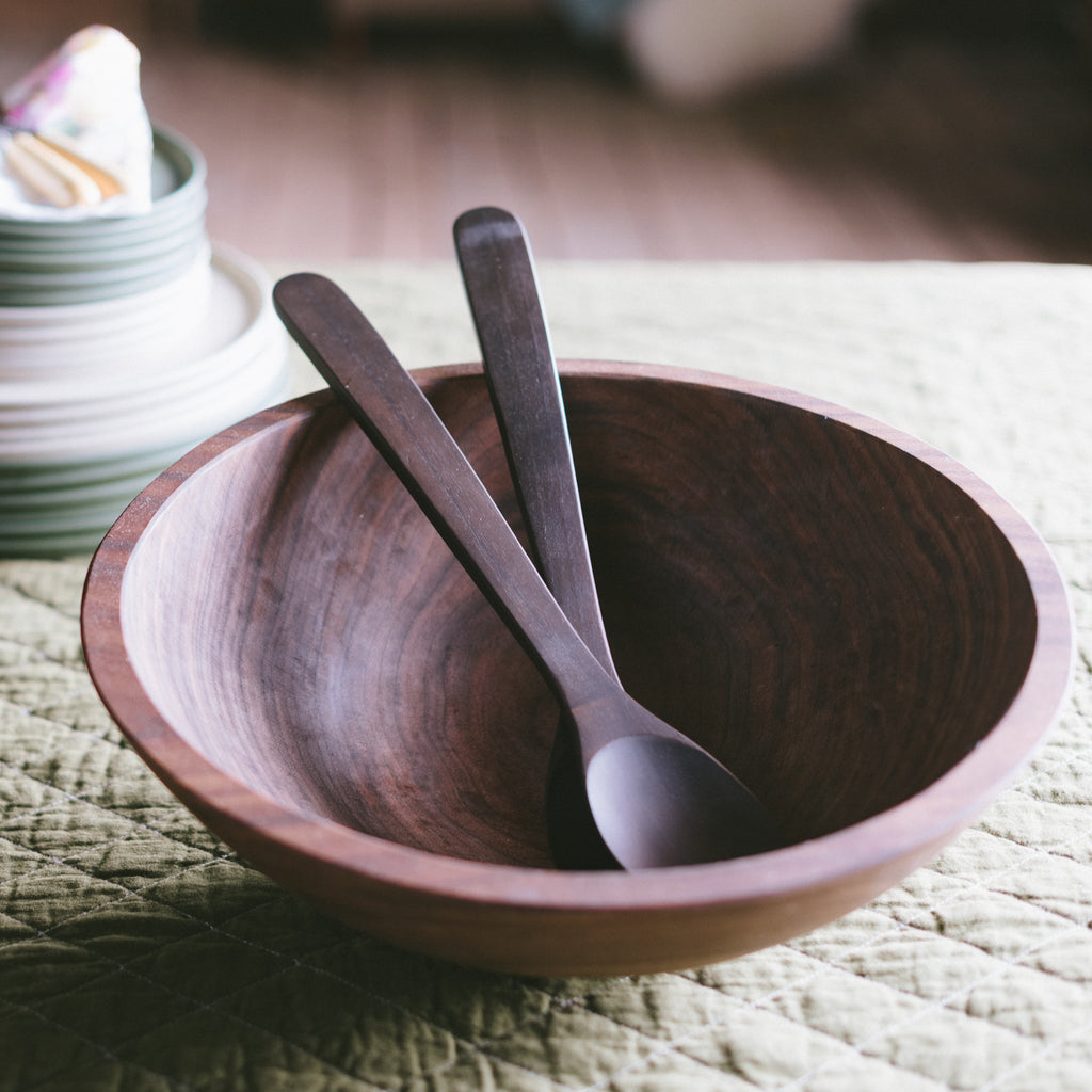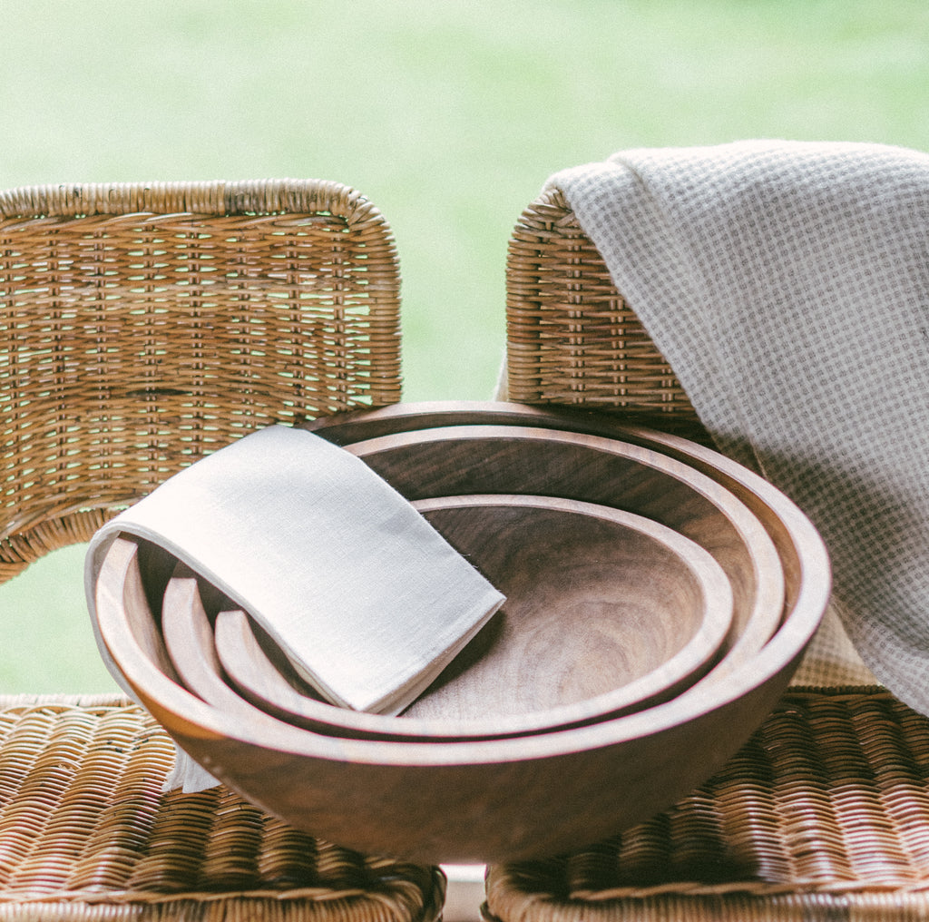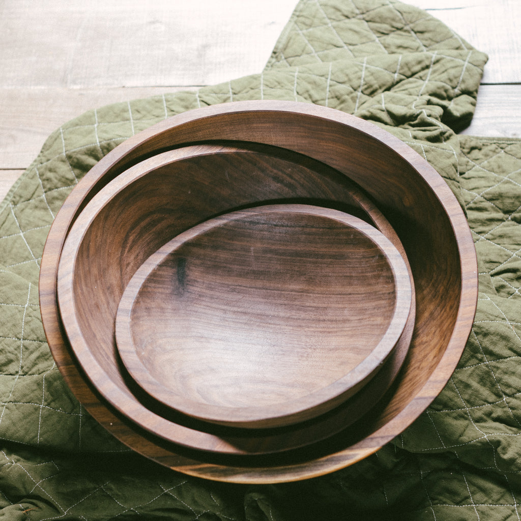 Our bowls are sustainably sourced, upcycled, and handcrafted in New England. The black walnut nesting bowls range in size from 13” to 18”, and are a classic round shape with a clean edge.