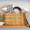 Handmade in Morocco with ethically-sourced woven palm leaves and naturally tanned leather.