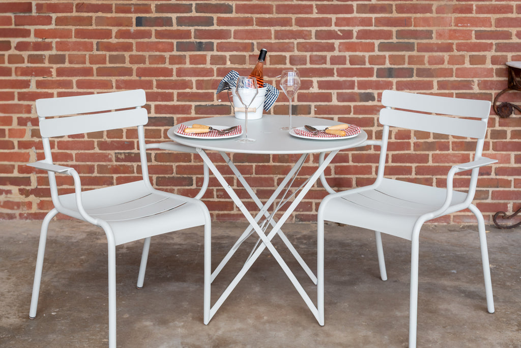 In 2004, Fermob asked Frédéric Sofia to reinterpret the legendary chairs and armchairs of the Jardin du Luxembourg, created in 1923 in the Paris parks department workshops, and which Fermob still manufactures today for the city's public gardens. The result was a chair and armchair with distinctive lines and forms, combining the lightness and resistance of aluminium, the comfort of curved seat slats and the practicality of a stackable frame.