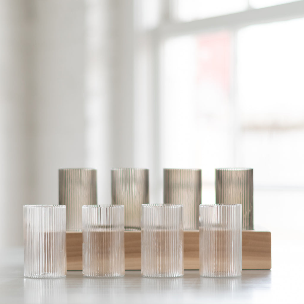 Inspired by small, delicate glasses traditionally used in French cuisine to serve little appetisers and desserts, this set of four mouth-blown glasses have a rippled surface that is distinctive to the series. Each glass can also be used as a lid for the Ripple Carafe and make an elegant addition to the Ripple collection at your table setting.