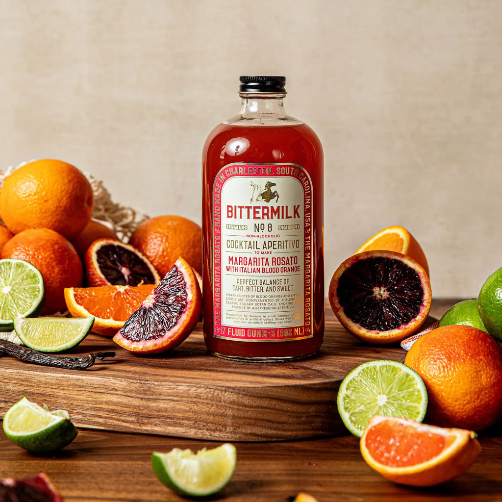 Kick off rosé season with our riff on the most popular warm-weather cocktail, the margarita. Bittermilk No.8 Margarita Rosato is a non-alcoholic mixer that honors the proportions of a margarita, but is built with Italian blood orange and lime with subtle hints of gentian, rhubarb and orange peel, reminiscent of a classic Italian Aperitivo.