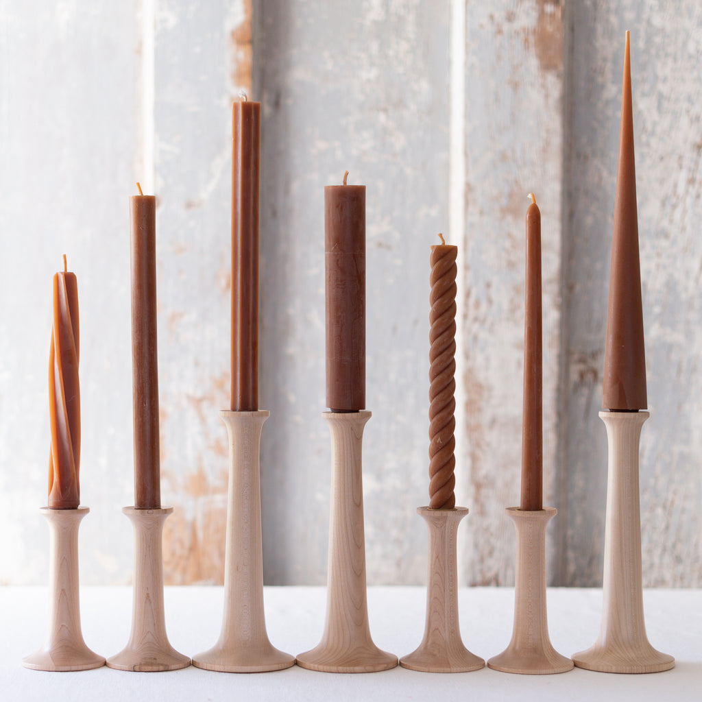 Our best selling Taper Candles, in Terracotta. Each candle is hand poured and individually finished in New York State. Lovingly made from 100% pure North American beeswax. Sold in pairs.