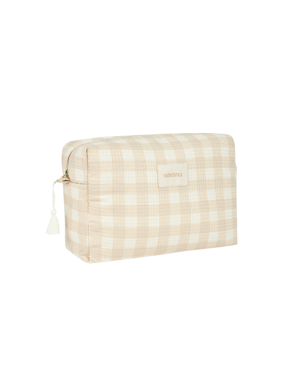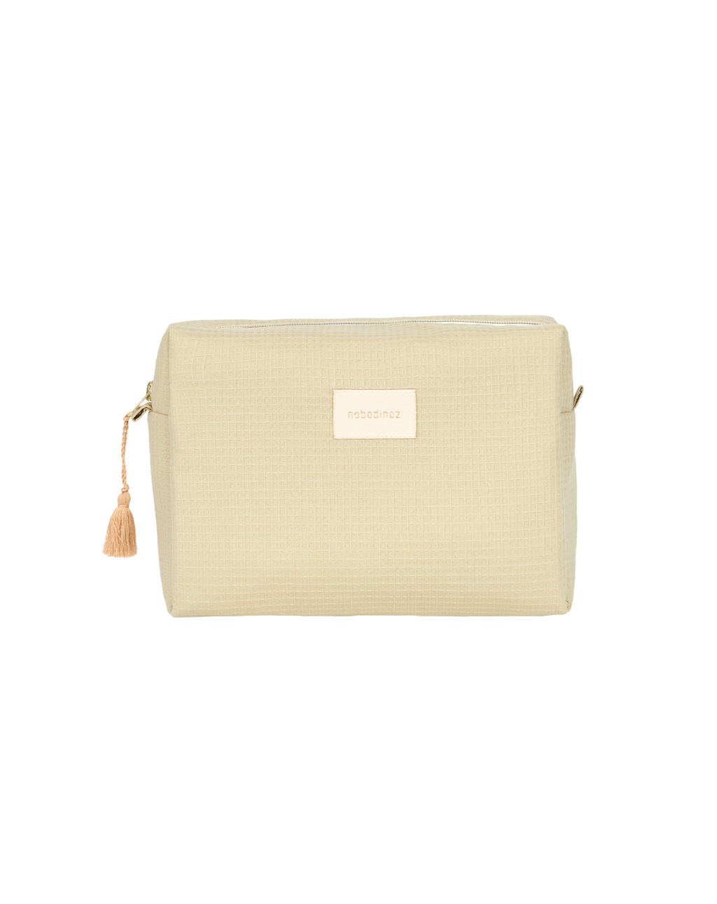Wide and very useful, the Diva vanity case is dressed of organic cotton honeycomb fabric and sports a practical waterproof inside lining. Stock all the lotions, creams, or other baby accessories inside to keep it safe!