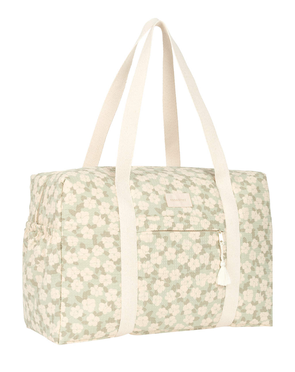 The Opera maternity suitcase, made with 100% organic honeycomb fabric, is ideal for a stay in the maternity ward. Its shape and size make it perfect for all your needs. Complete your ensemble with a vanity case and waterproof changing pad, both featuring an exclusive honeycomb design made in collaboration with our Barcelona weavers. These sophisticated and elegant accessories are also highly resistant, ensuring they will last through your maternity journey.