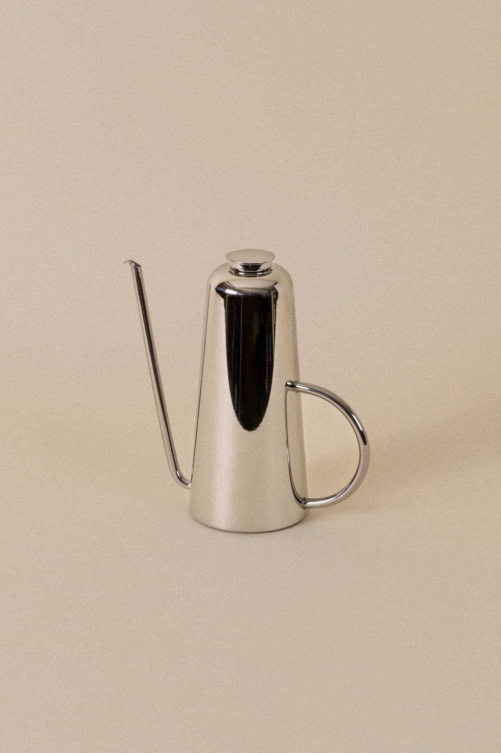Meet our Oil Can which features an elongated spout that ensures an even and steady pour. Furthermore, the tip of the spout is hand-sharpened to cut the oil's stream off cleanly, preventing drips. Made of stainless steel, our Oil Can's refined silhouette protects against light and debris to keeps the oil fresh.