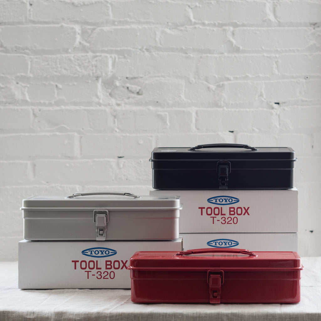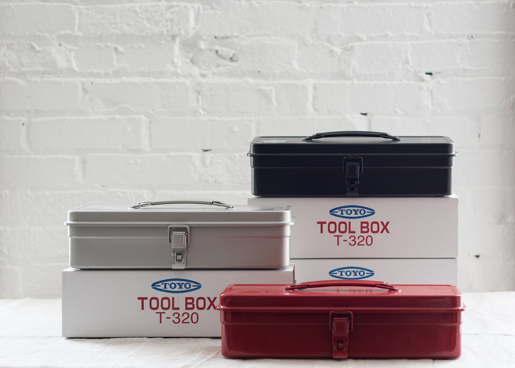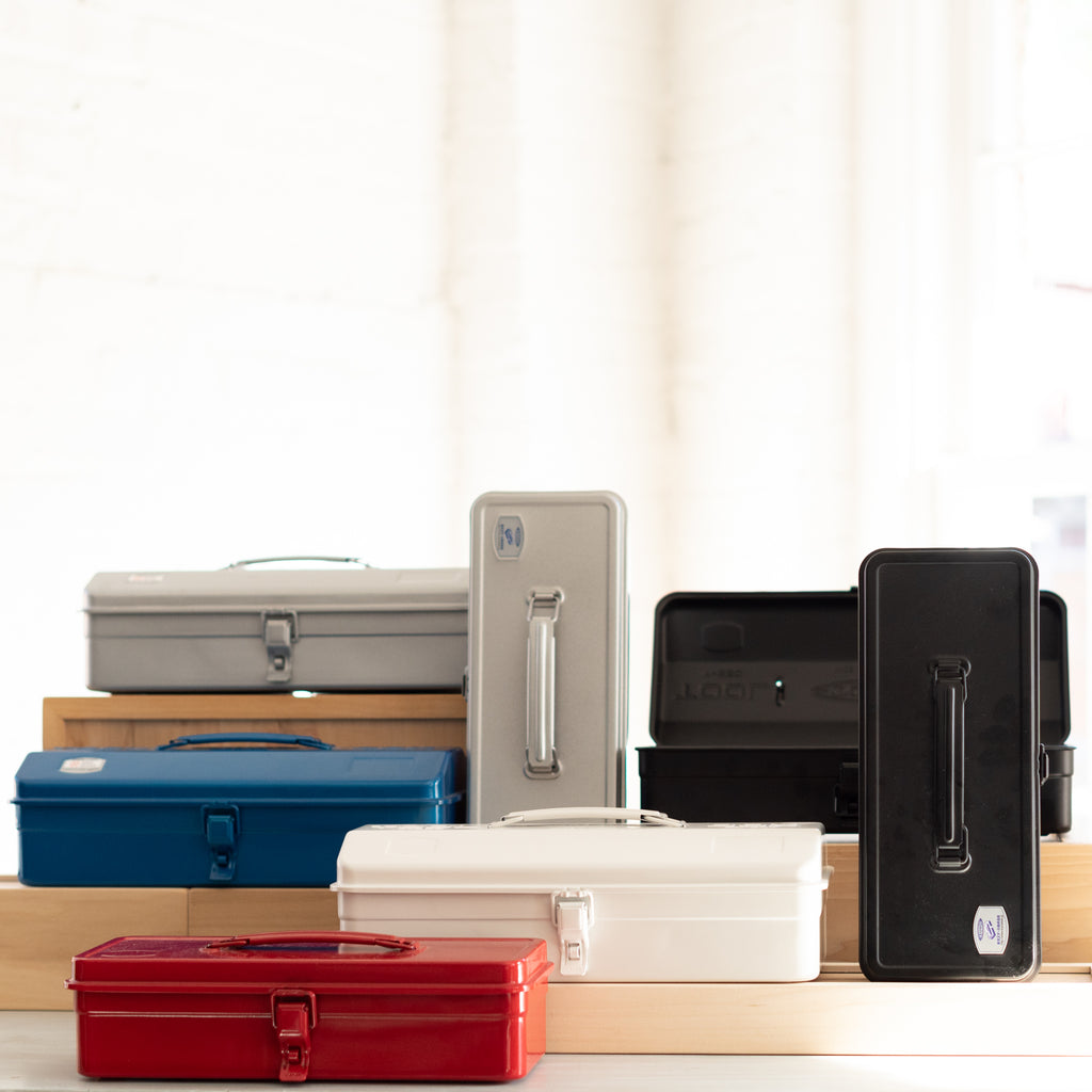 Camber: Steel toolbox with camber lid and top extendable handle. Produced from one piece of steel, resulting in water-tightness, no sharp edges and unmatched strength. Use for tools, art supplies, make-up - the possibilities are endless!