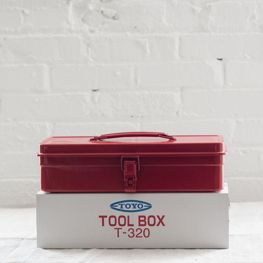 Steel toolbox with cantilever lid, two upper storage trays with adjustable and removable dividers and hole for a padlock. Use for art supplies, make-up, medical supplies, snacks or tea - the possibilities are endless.