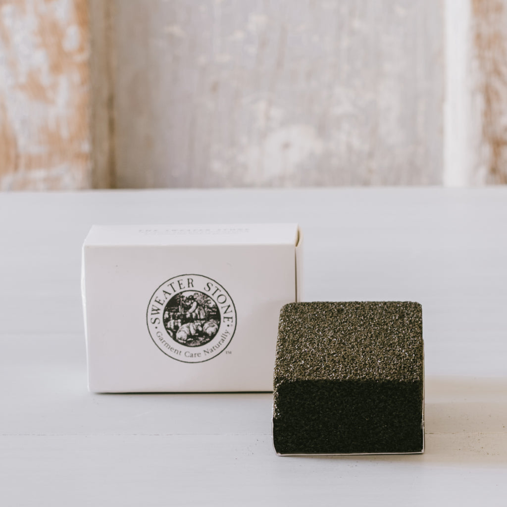 Natural pumice-like stone that catches and removes pilling.