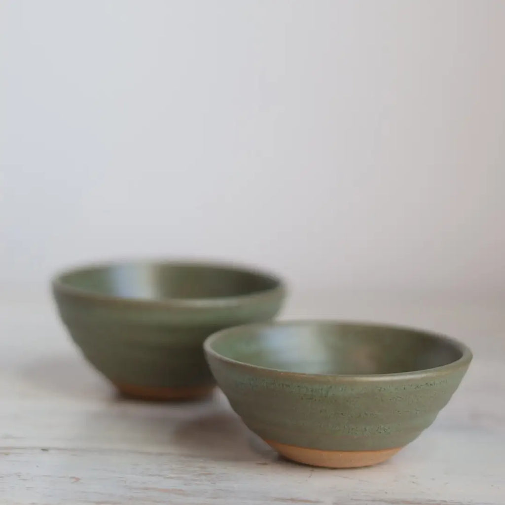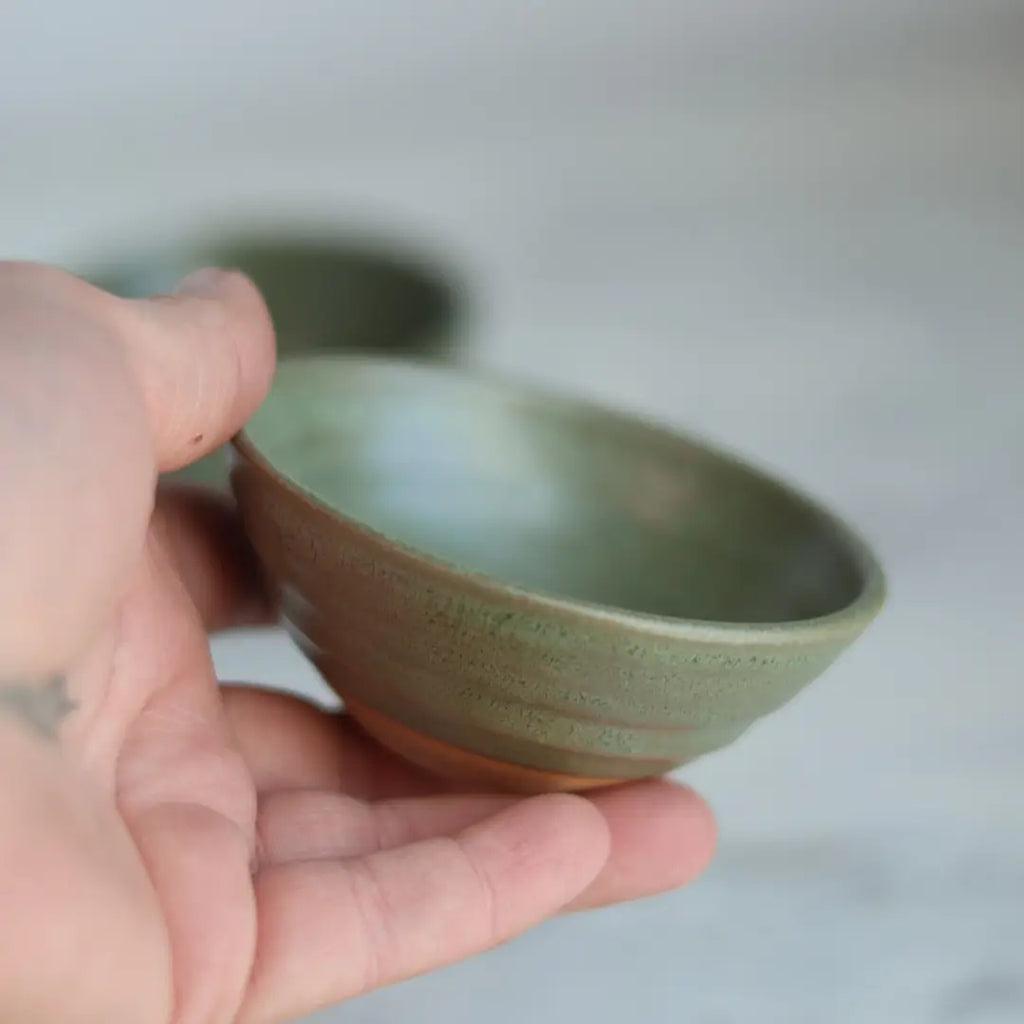 The Artist Choice Little Bowls offer a delightful warm-up project from our potters, each piece distinctly different. This collection allows artisans the freedom to create freely. Sizes range from 1.5" to 2.5" in diameter, all wheel-thrown and unique. We celebrate the natural variations in size, shape, and finish inherent to handmade pottery and invite you to appreciate these qualities. Ideal uses include serving juice, whiskey, vitamins, air plants, baby succulents, or dipping sauces like ranch.
