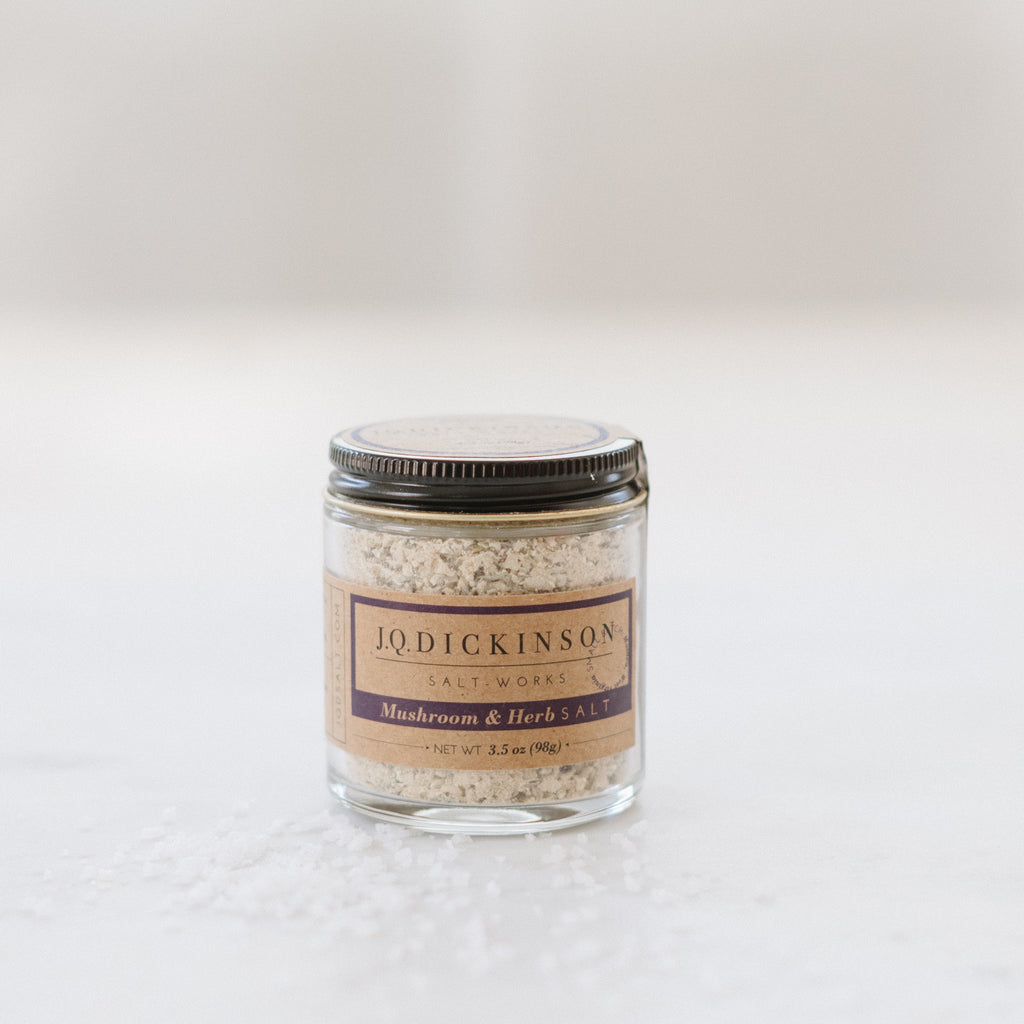 Mushroom Herb is a partnership with Hernshaw Farms which is turning mine land to farm land with their mushroom blocks. A blend of several mushrooms, rosemary, thyme and black papper. This salt is a natural for meats before cooking. It is also great on tofu and roasted vegetables.
