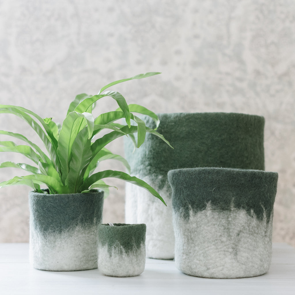 Our handmade flowerpots, but with a lovely ombré effect. The inside is coated with natural rubber that makes the flowerpot waterproof. Perfect pots to place in the window, on the floor, or on the table!