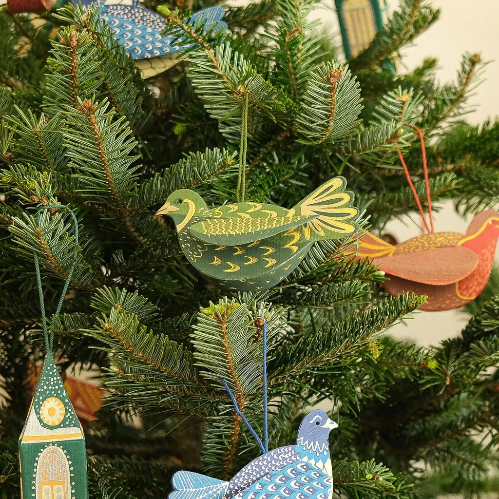 Handcrafted screen-printed ornament featuring a partridge design, meticulously created by skilled artisans in Jaipur on both sides.
