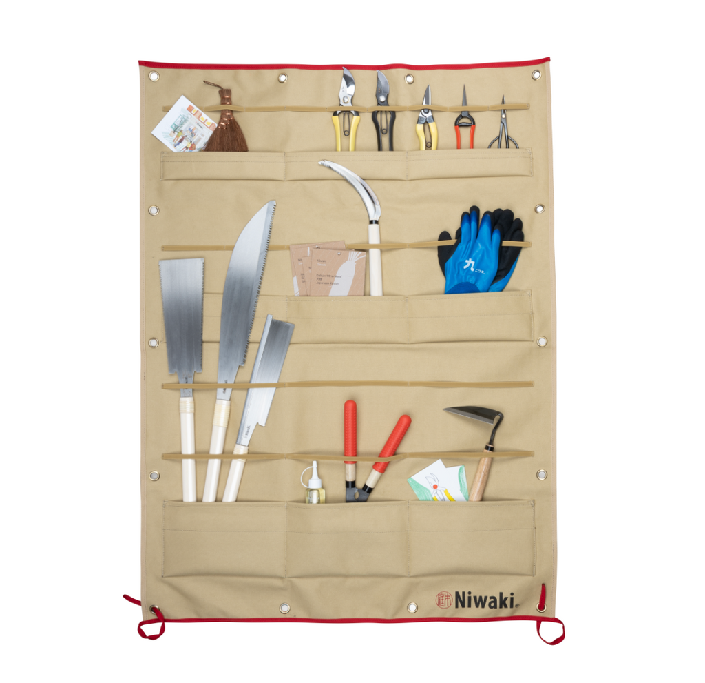 Don’t hide your light under a bushel, and don’t hide your tools in a spidery corner of the shed: exhibit them with pride in a Niwaki Canvas Tool Display.