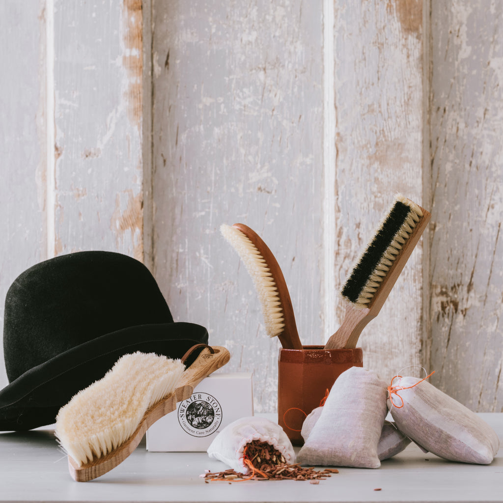 The Cashmere Brush is ideal for removing lint, fuzz, and dust from cashmere or woolen items. Brushing between wears helps release natural oils that rejuvenate yarns to look like new.