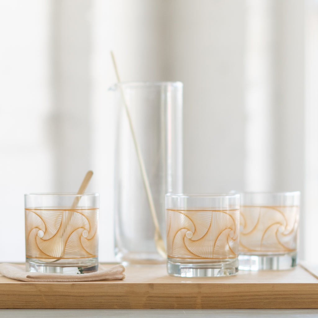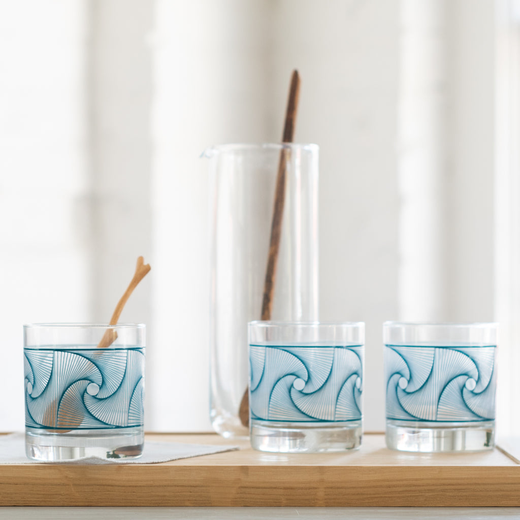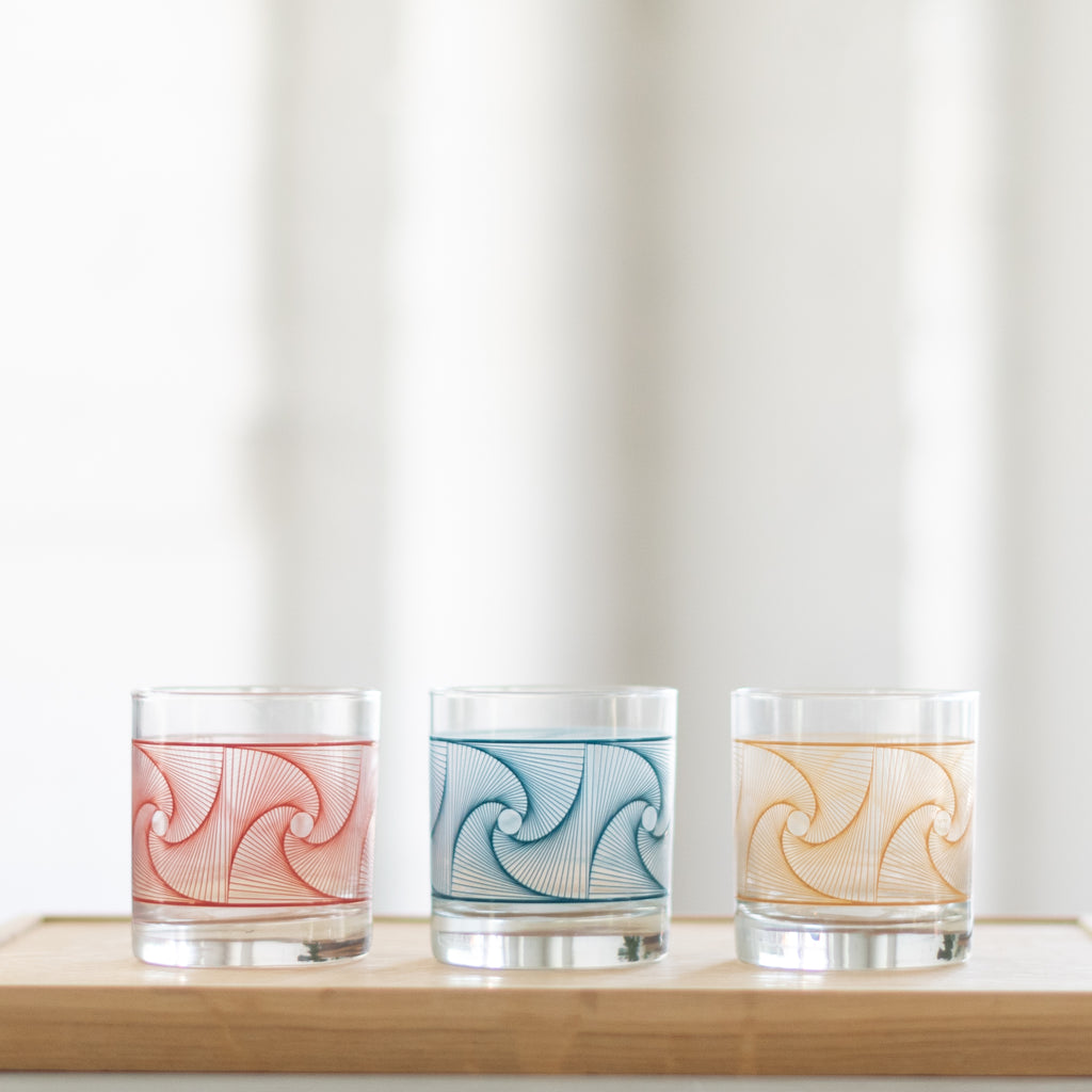 Drinks taste better when they're served in a beautiful glass. Our patterns are designed with Mid Century Modern styles in mind. They fully wrap around each glass ensuring that your drink looks good from any angle. Because we use modern technology to print our designs, the glasses have a raised texture which makes them feel great in the hand. This new technology also ensures that the designs won't fade over time.
