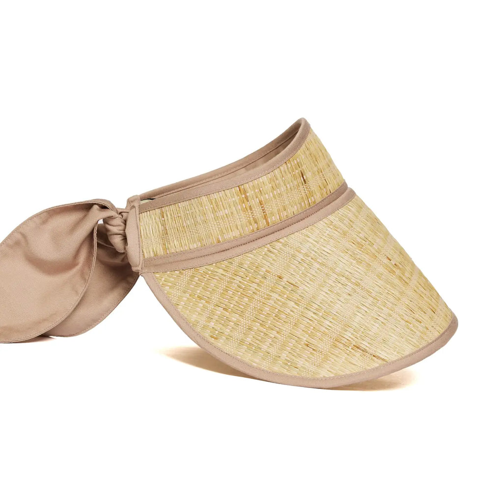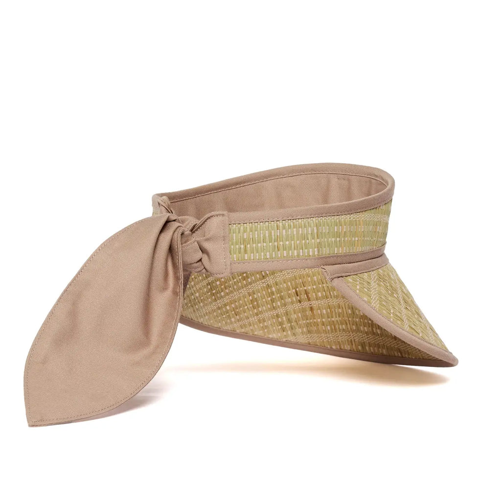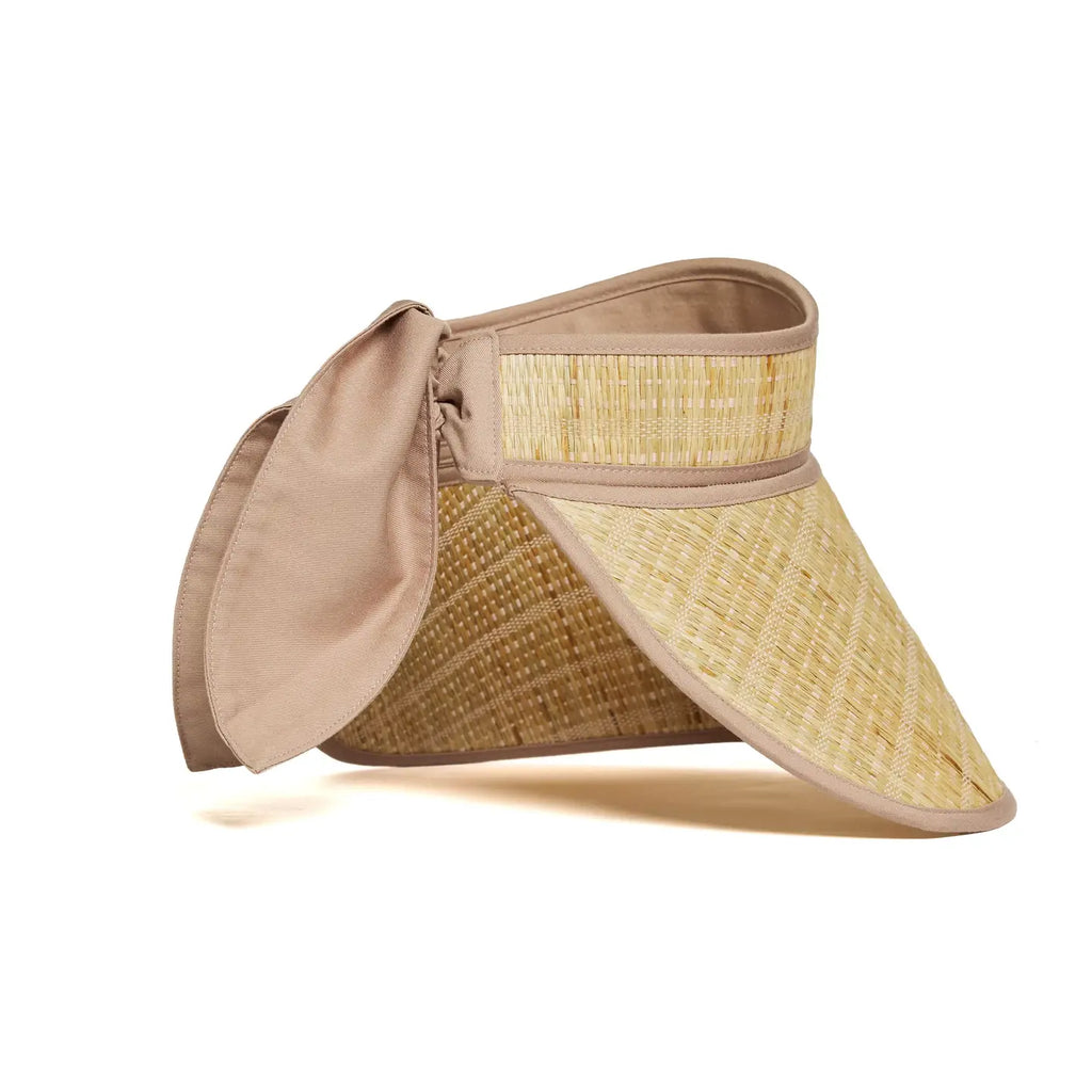 The Sanctuary Visor is a sun visor carefully handcrafted from 100% natural organic grass fibres. Trimmed with 100% cotton fabric, the addition of wide ties allows for the perfect fit and comfort. The lovely wide brim makes Sanctuary the perfect piece for luxury sun-safety and style.