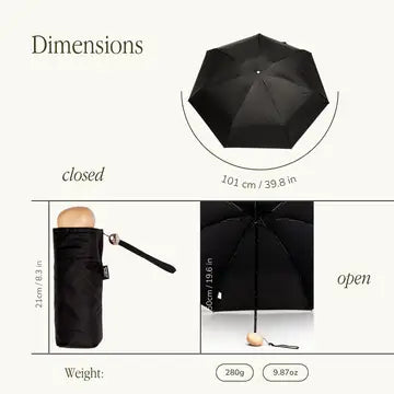 Compact enough to slip into a handbag, clutch, pocket, or backpack, The Mini is perfect for city living, commuting, or travel – always ready when the weather turns.
