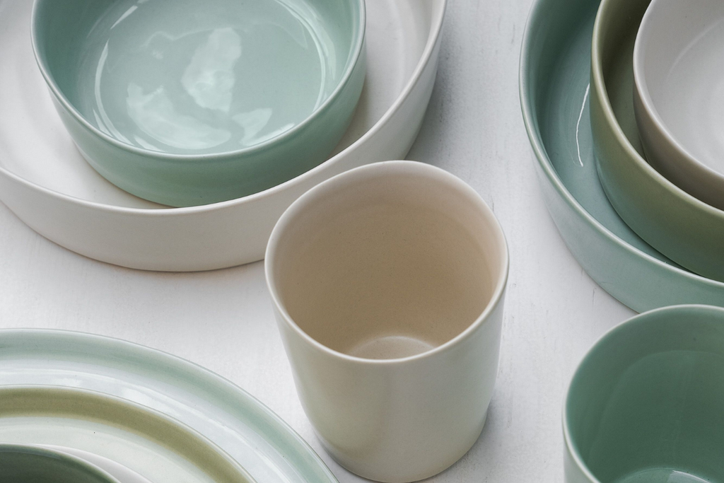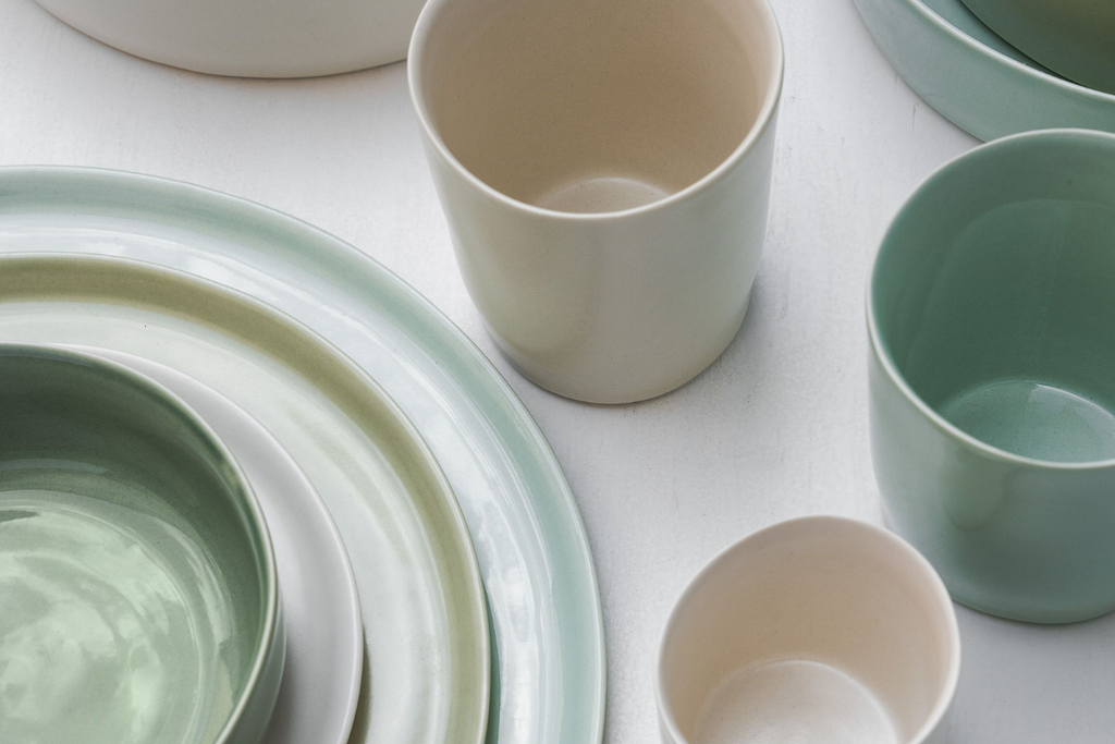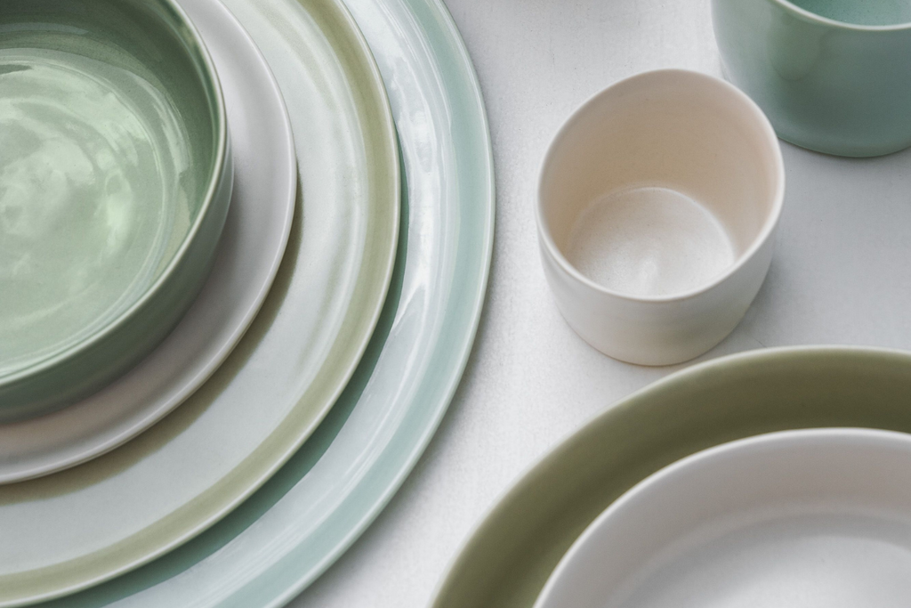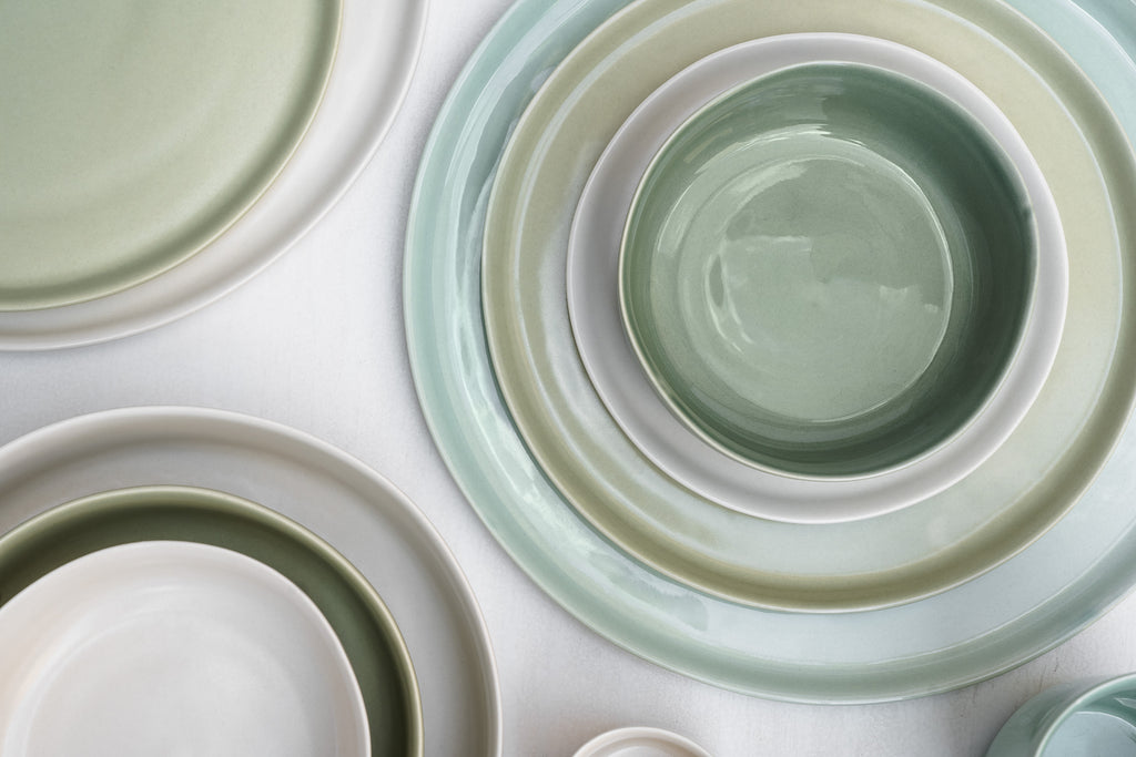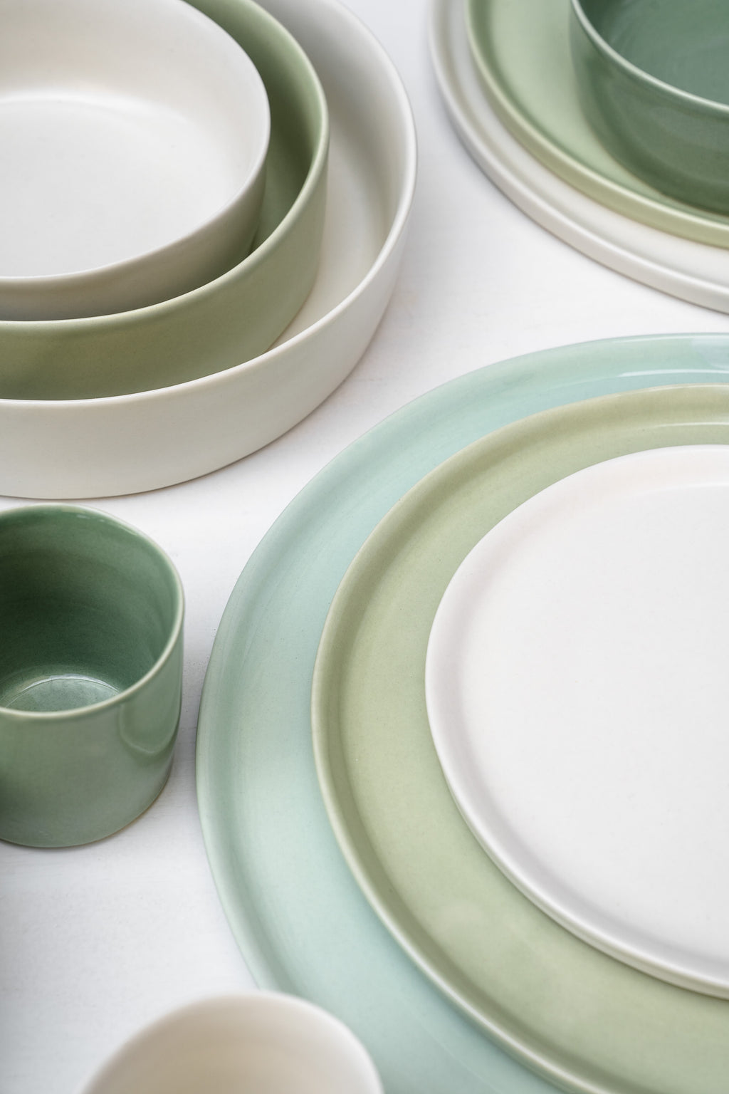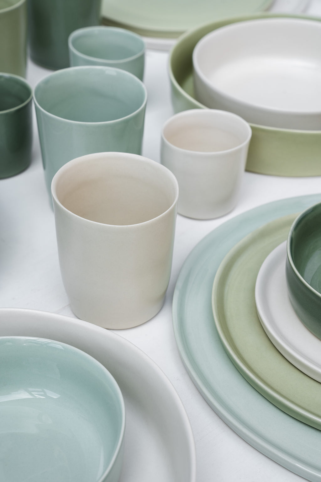 The ELEPHANT FEET earthenware is based on the work of the artist with whom we work. He has been working with celadone paints for over 20 years and researches their variations and reactions when modifying the composition of the minerals, the combustion temperatures and the air composition. In this way, beautiful soft-matte and delicate-shiny shades succeed in all variants from sky blue to broken steel blue to earthy green, which form the basis of his artistic work.