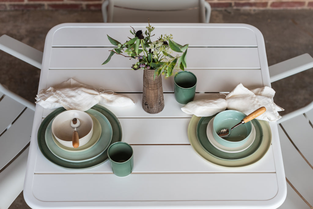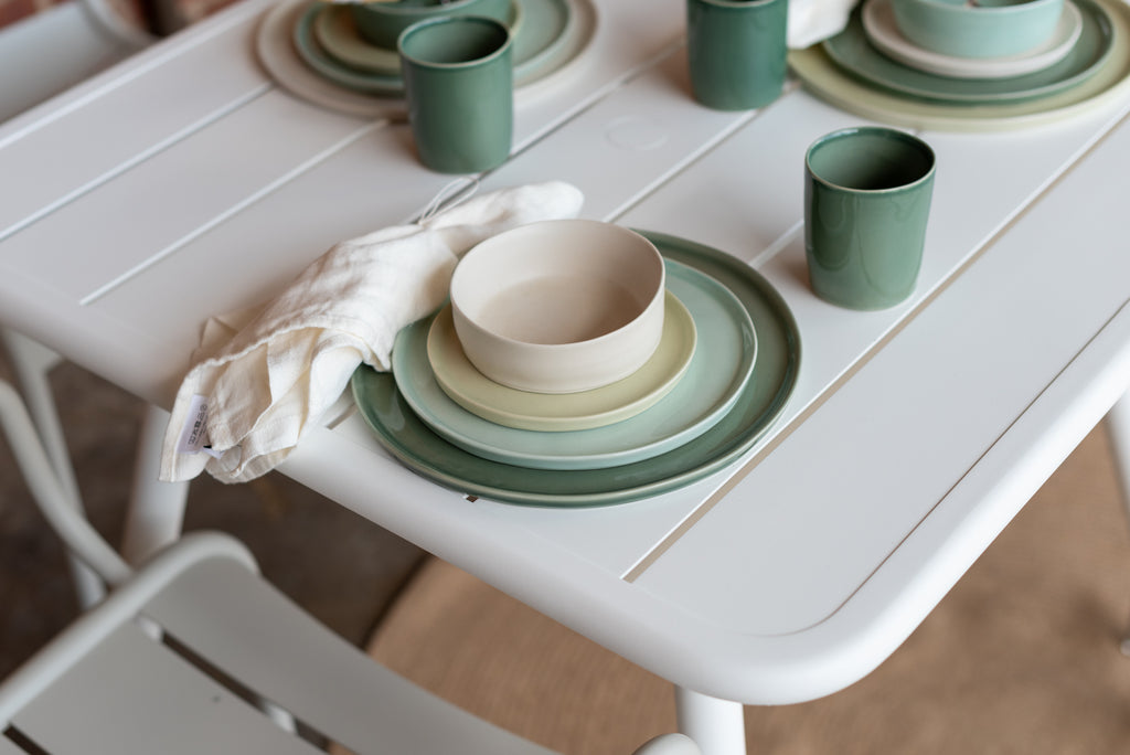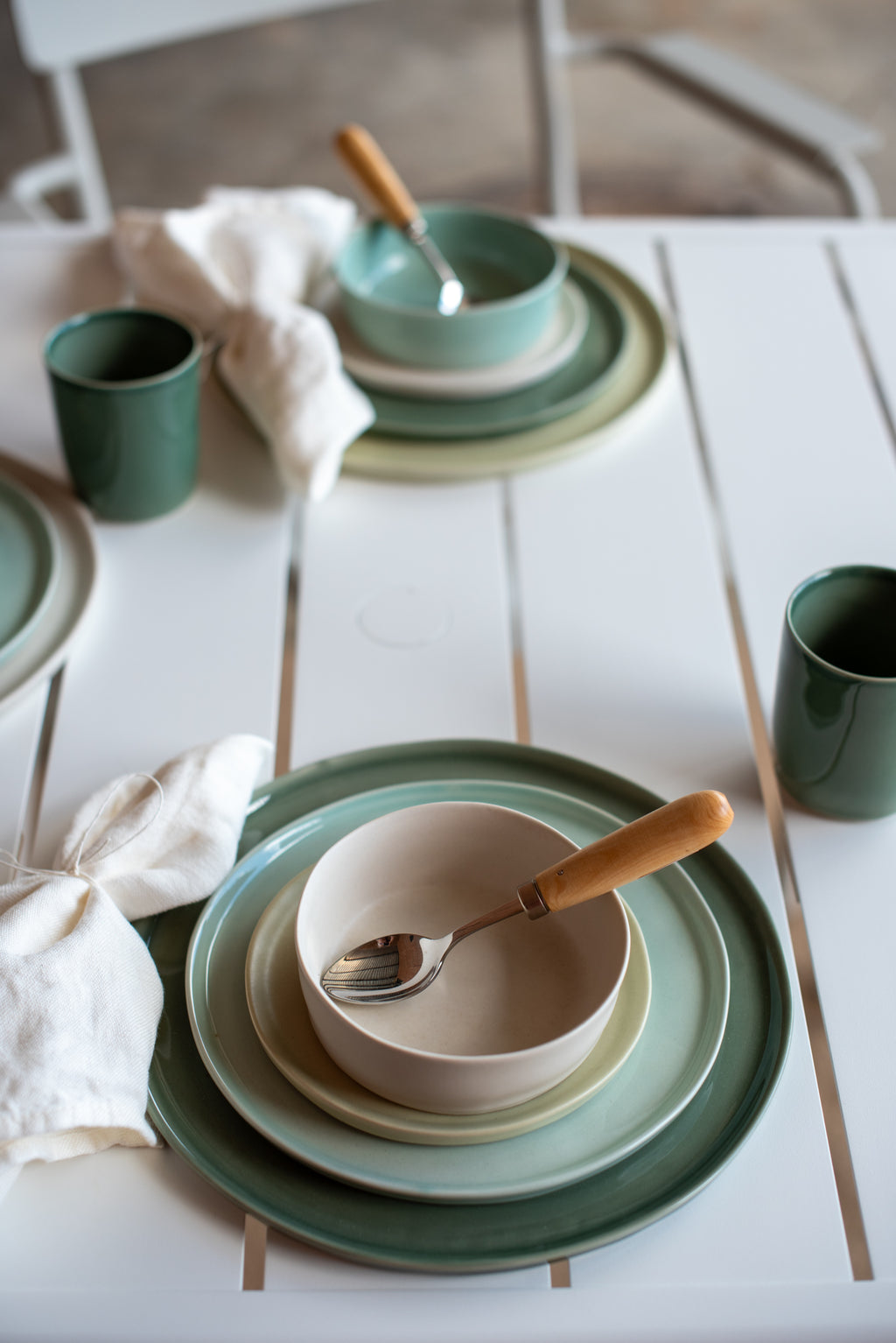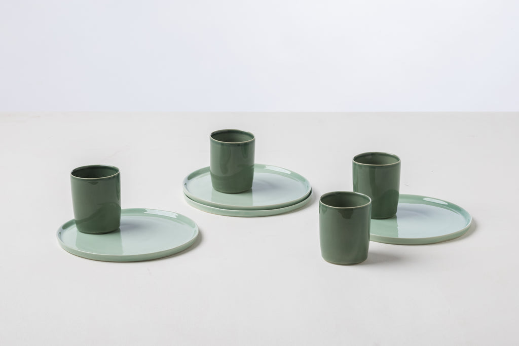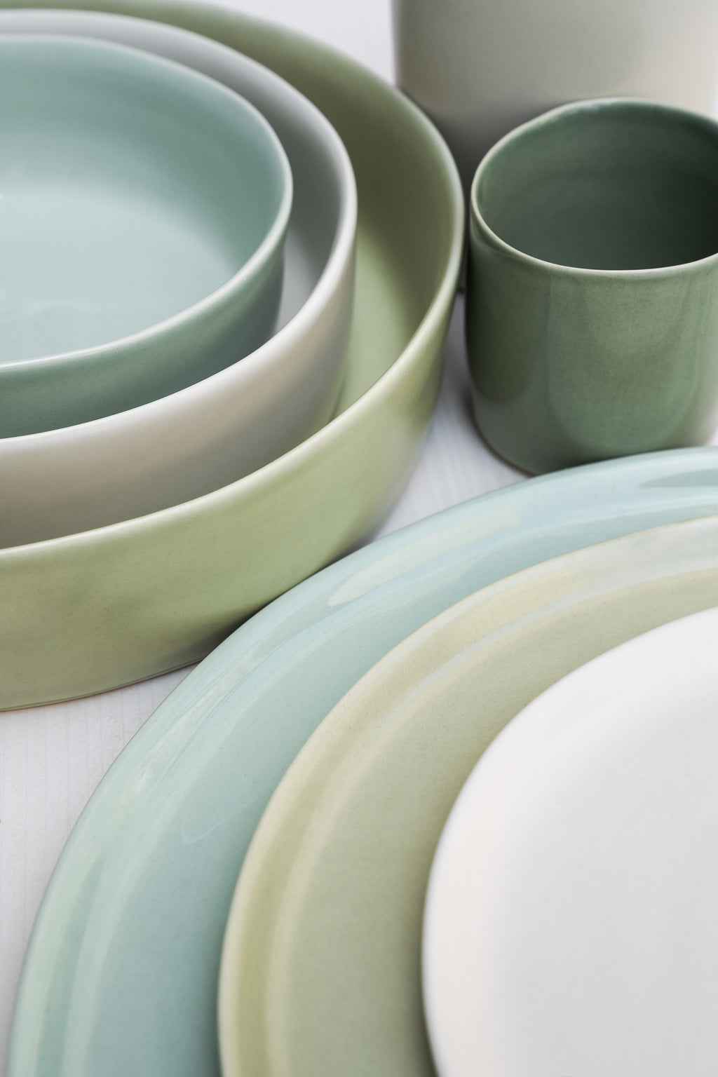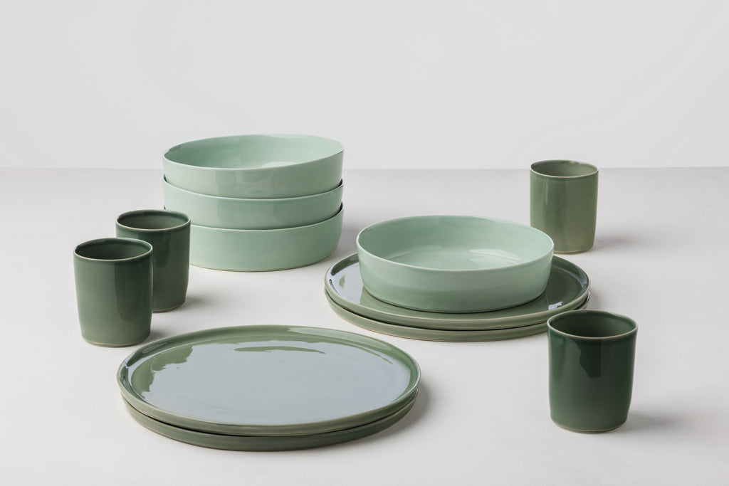 The ELEPHANT FEET earthenware is based on the work of the artist with whom we work. He has been working with celadone paints for over 20 years and researches their variations and reactions when modifying the composition of the minerals, the combustion temperatures and the air composition. In this way, beautiful soft-matte and delicate-shiny shades succeed in all variants from sky blue to broken steel blue to earthy green, which form the basis of his artistic work.