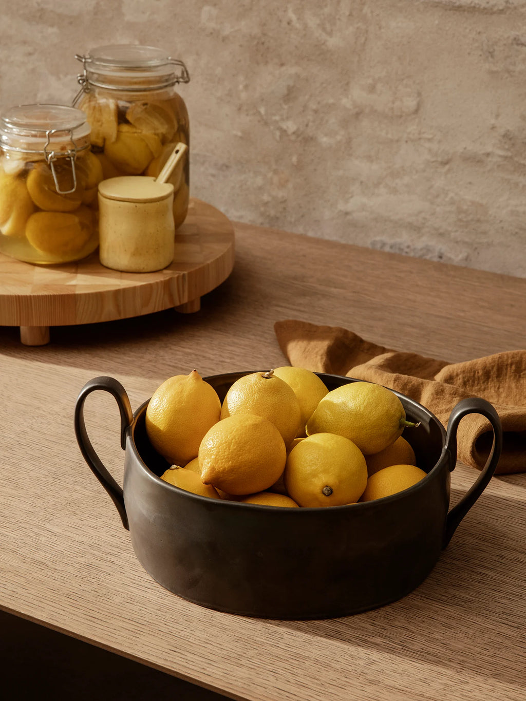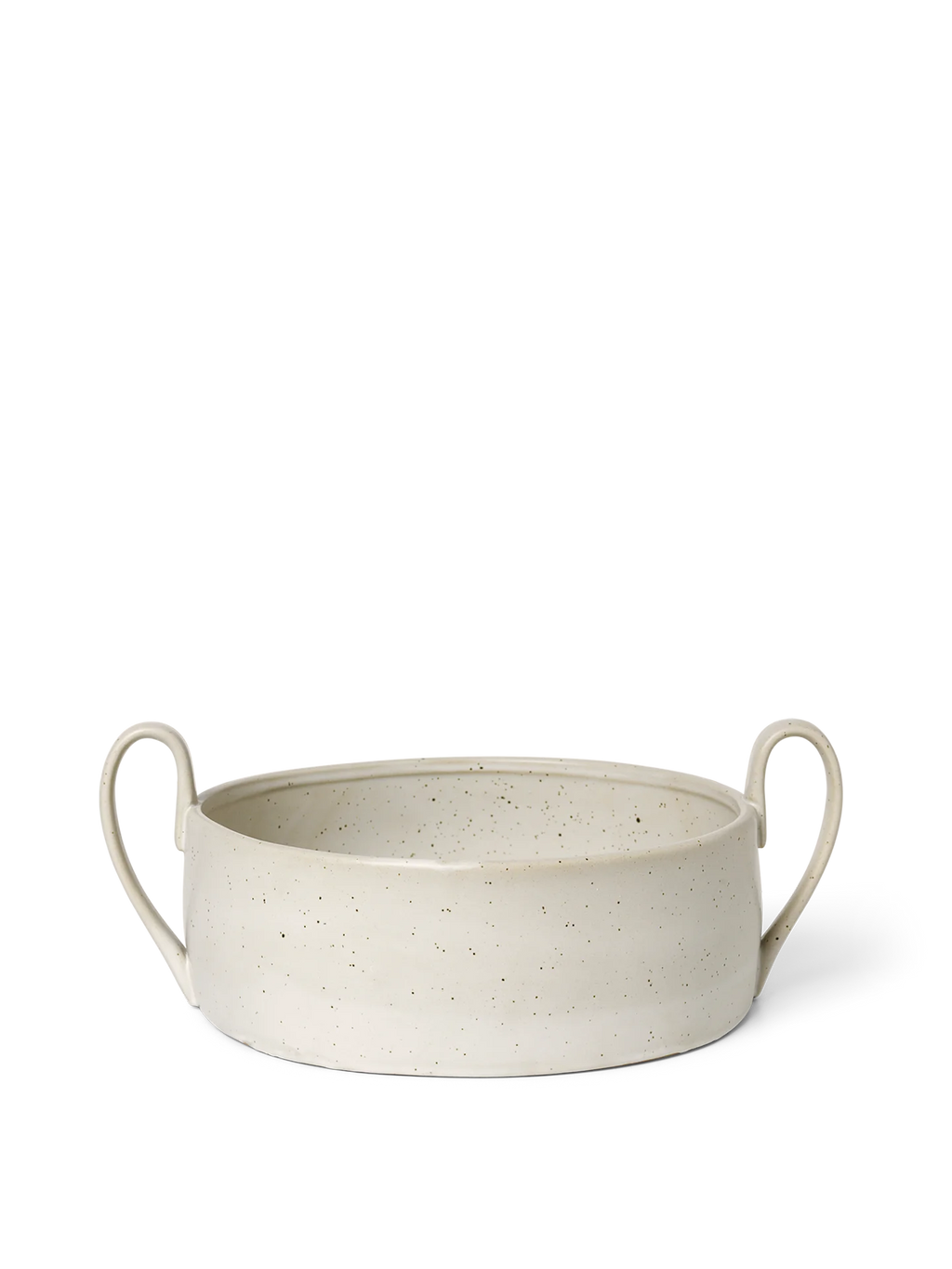 Flow is a series of perfectly imperfect tableware made to modern sensibilities using traditional craftsmanship techniques. All the items are detailed with a semi-matte glaze for a unique expression. The simple, clean lines of this large bowl are offset with two distinctive elongated handles that are sure to make this the central piece of any table setting.
