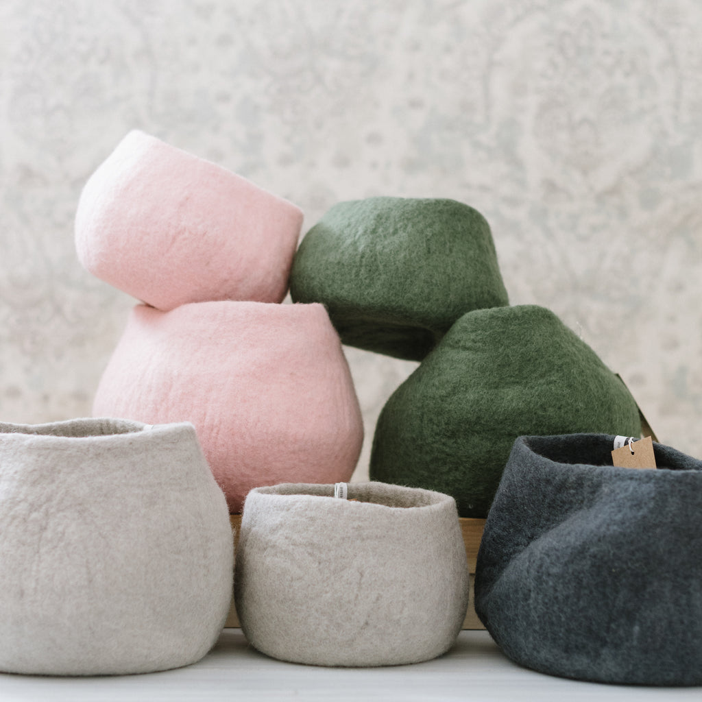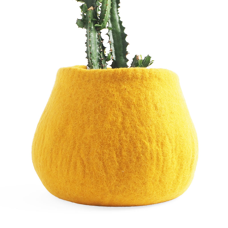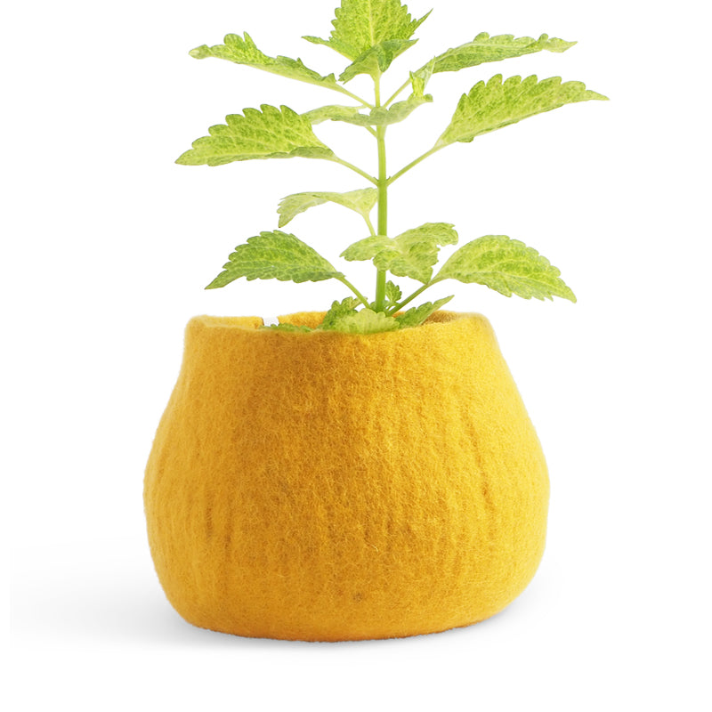 Our handmade, wool flowerpots are waterproof thanks to their natural rubber treatment on the interior of the pot. Perfect pots to place in the window, on the floor, or table.
