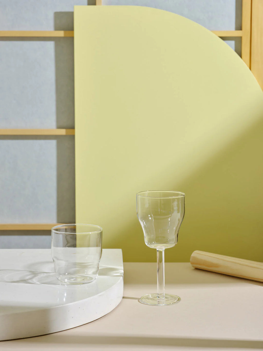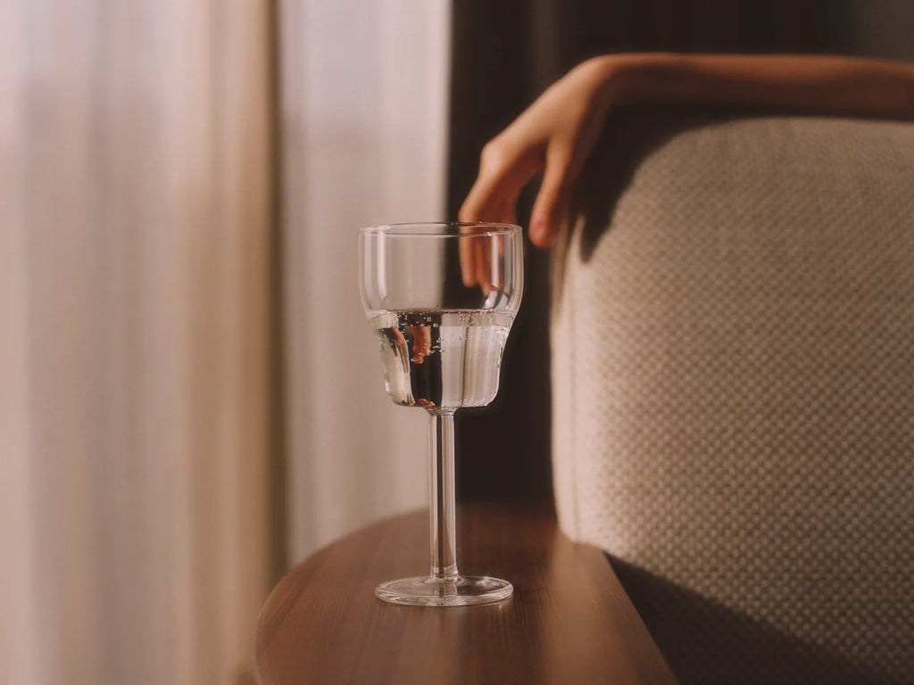 This piece of glassware is crafted from Borosilicate glass known for its pure and resistant quality, shaped with traditional mouth blowing technique; the innovation of design comes from modern shapes inspired by aesthetics of rationalist and modernist architecture whilst respecting its functionality. The result gives each piece a simple elegance.