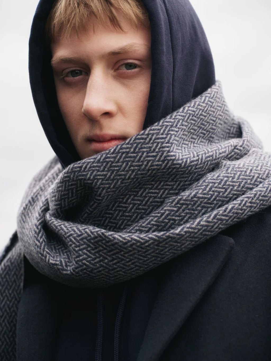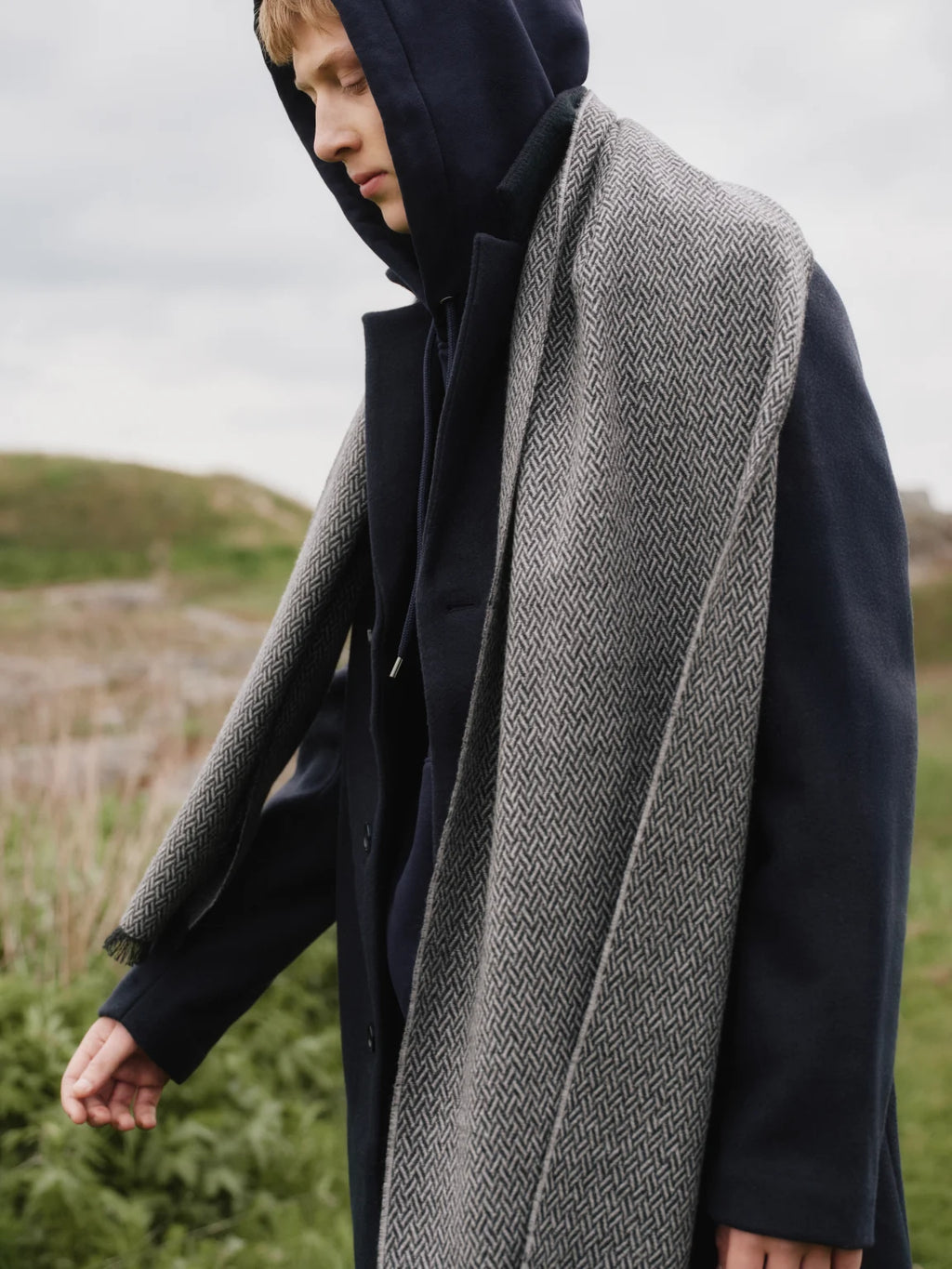 Created by Leonardo Hidalgo, the HUURE design draws inspiration from the forests around Helsinki. It incorporates natural motifs like stones, flowing water, moonlight, and towering trees, expressed through a series of shaft loom patterns. Crafted from merino wool, these scarves combine lightweight comfort with exceptional warmth. This merino wool scarf makes an ideal and thoughtful gift for men.