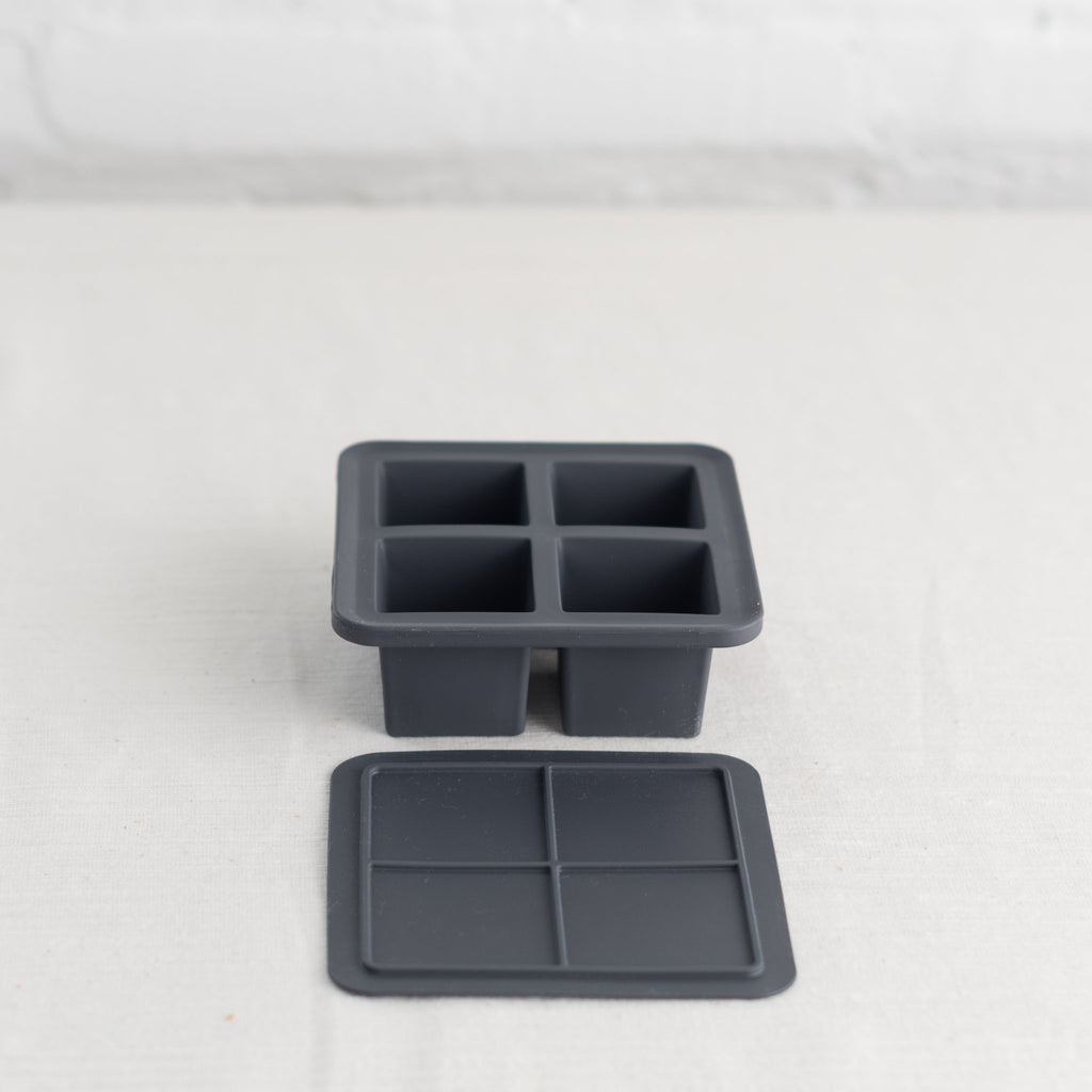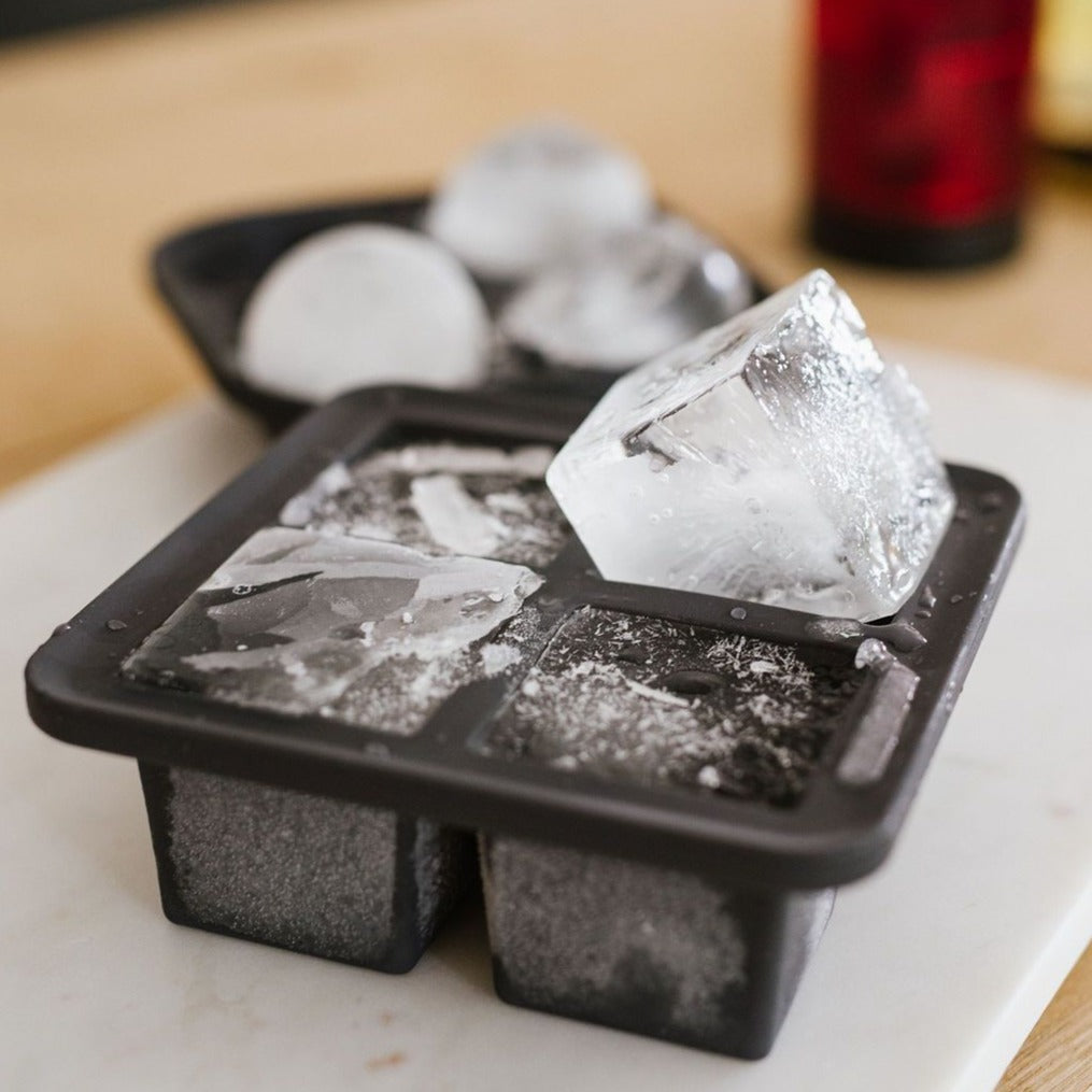 Ice at its most ideal–extra cold, for extra long. Made of silicone and steel, these king-sized cubes are designed for slow-melting, simple filling and easy transporting, while an independent cube design makes removal a cool breeze. A protective lid keeps ice pure and free of any potential freezer notes. Makes four king-sized (2 1/4") cubes.