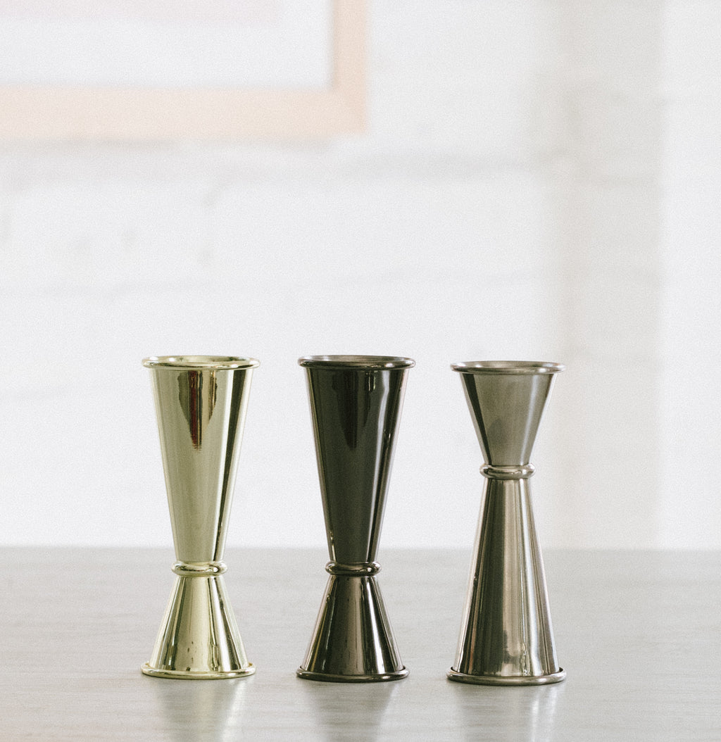 Cast in lustrous stainless steel with a band to separate its one- and two-ounce sections, the interior of each side of our professional Japanese-style double jigger is scored with pinpoint mixology measurements (1.5, 0.75 and 0.5 ounces).