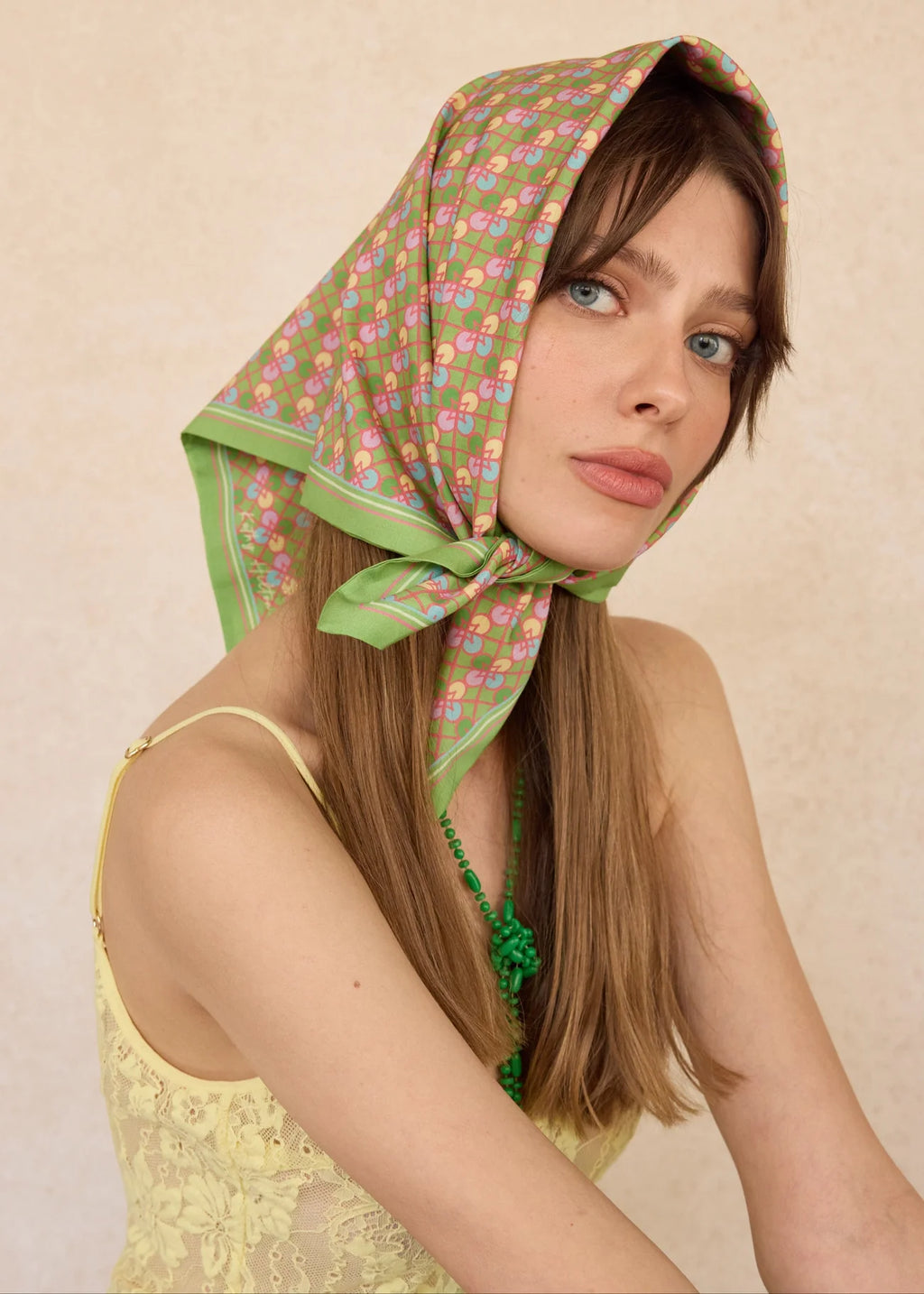 The Grove is a picturesque combination of natural beauty featuring sky blue, lemon yellow and dreamy lilac against a background of lush green.