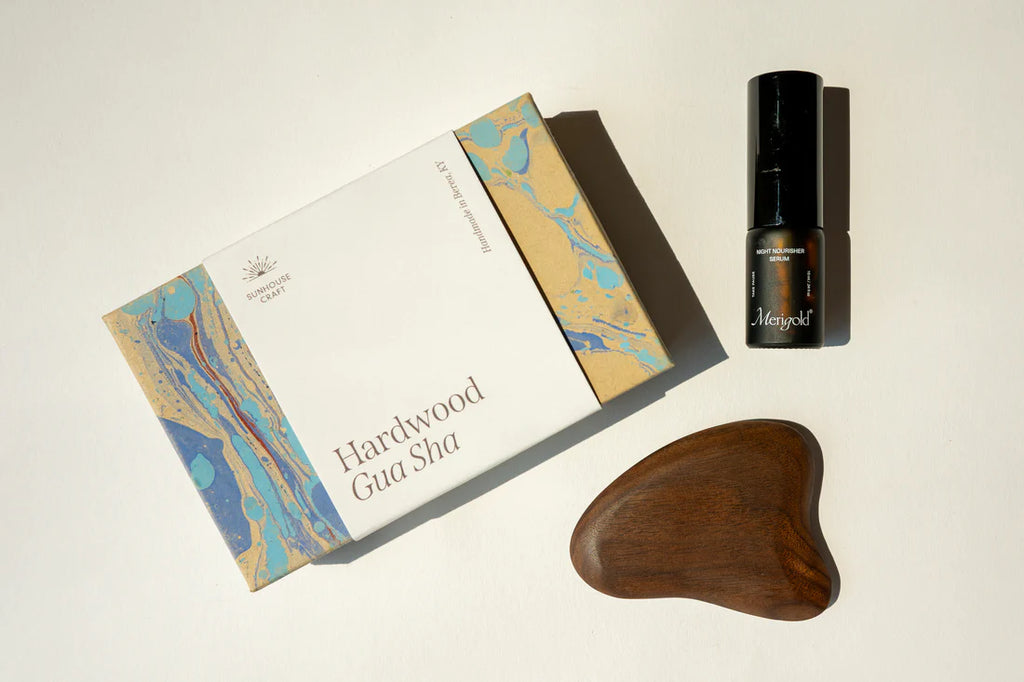 This curated set brings together two essential skincare tools in one thoughtfully designed package. The Night Nourisher Serum features a striking azure hue and an enveloping floral aroma that elevates your evening routine. Paired with a hand-crafted wooden Gua Sha, this combination supports both nourishment and facial rejuvenation. Perfect for those seeking to integrate traditional wellness practices with modern skincare, this set delivers professional-grade results in a beautifully presented format.