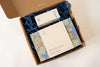 Hand marbled 100% recycled packaging with letter pressed sleeve, all made in the USA.