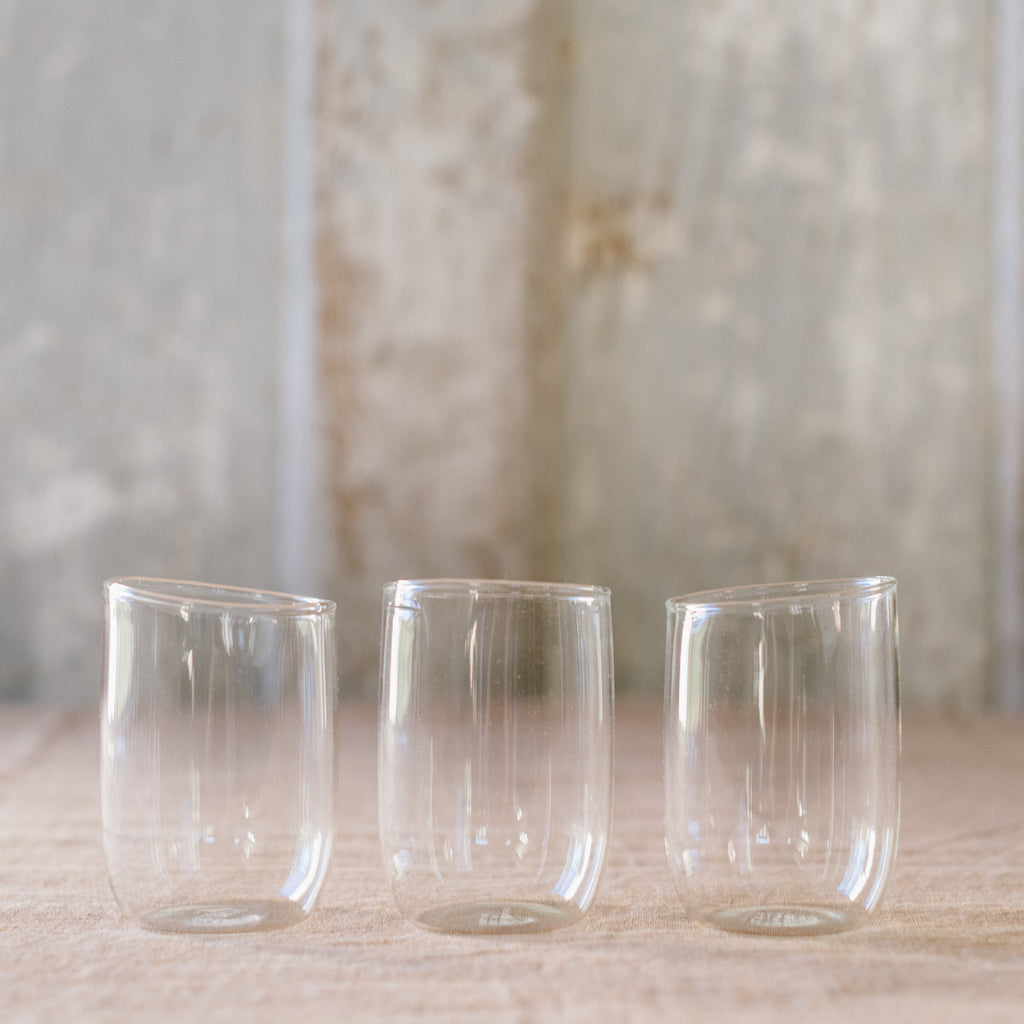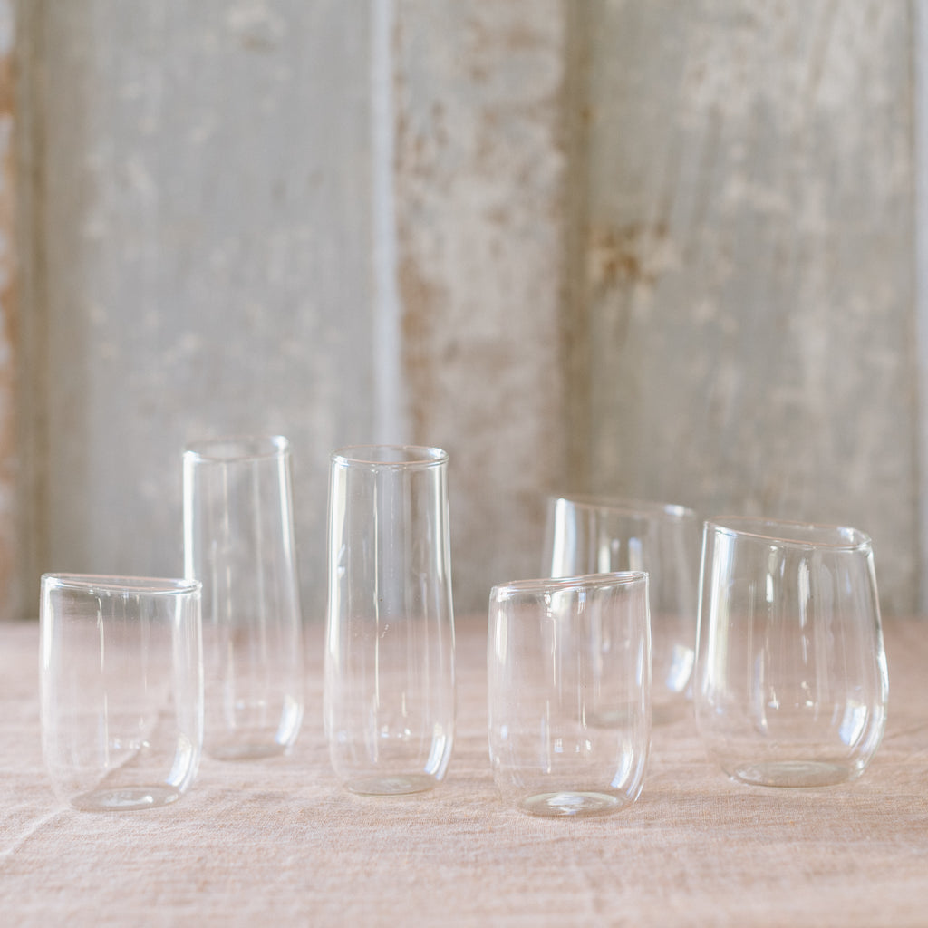 Our Organic Glassware is slightly amorphous, for just a hint of visual whimsy with your morning OJ or at your dinnertime place settings. Mix-and-match heights for a glassware set that feels thoroughly eccentric but still utterly cool.