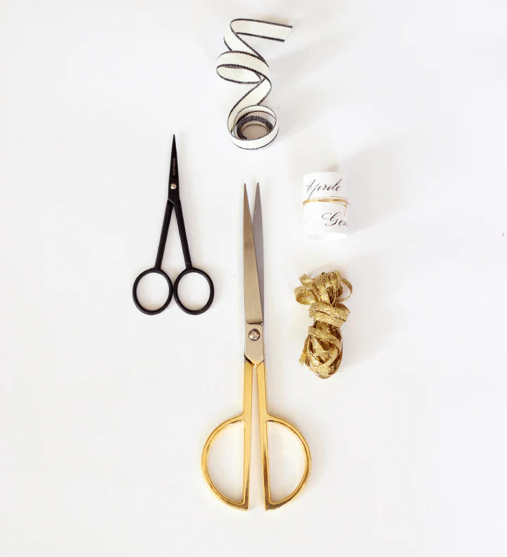 Introducing our Paper Scissors - the ultimate tool for paper cutting! Crafted in Italy with nods to 1950s design, these scissors boast flatted handles and durable carbon steel blades. Accented with an elegant 24 karat gold finish, each pair is etched with our Studio Carta logo and comes beautifully packaged in a letterpress paper label. Precision sharpening guarantees a perfect cut every time, so you can count on these scissors for years to come. Please note that the handle's gold finish may have slight variations, giving each pair its own unique character. Get yours now and add some shine to your cutting game!