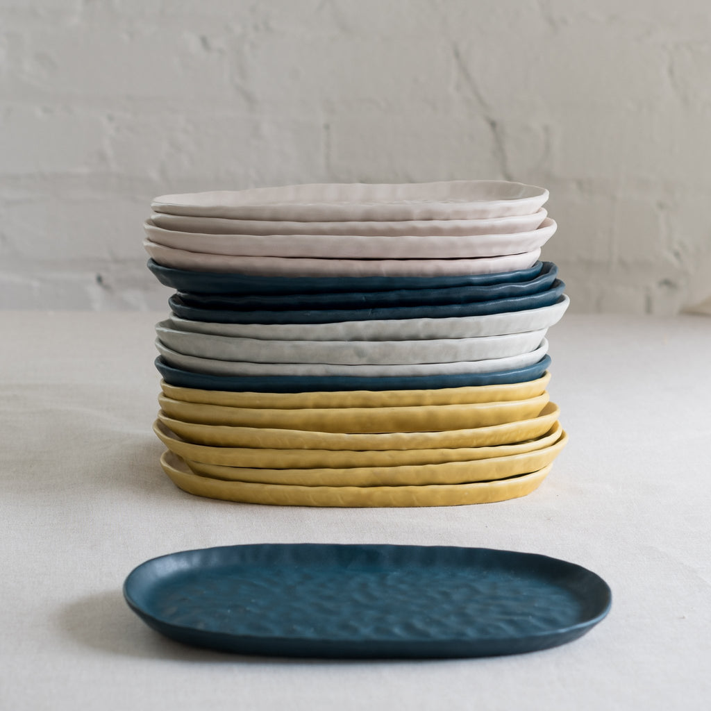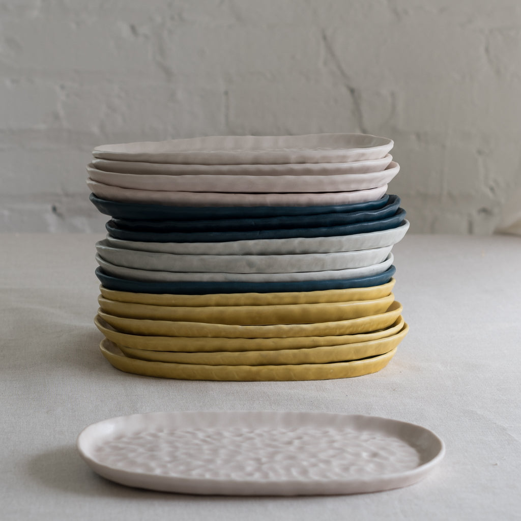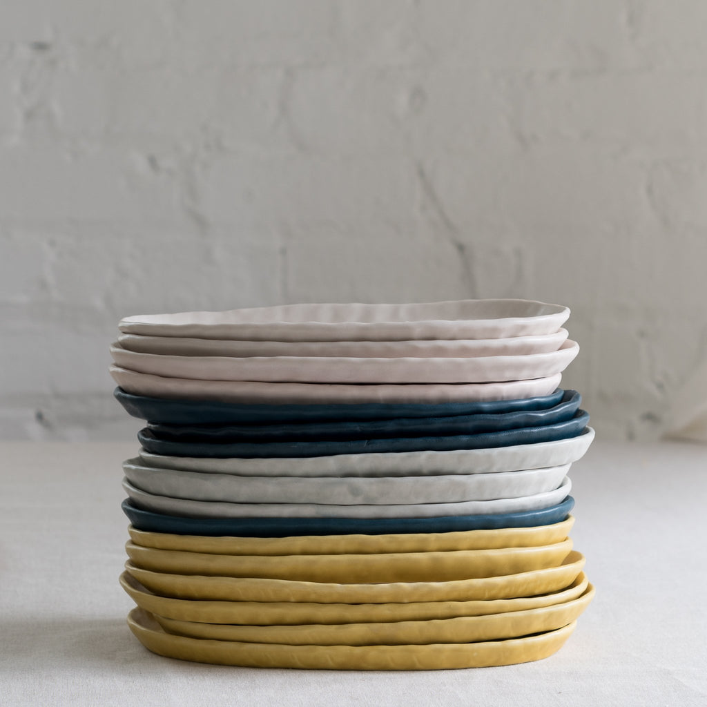 Handmade porcelain pinched plate in a satin matte glaze. Mix and match the colors, or keep it minimal.