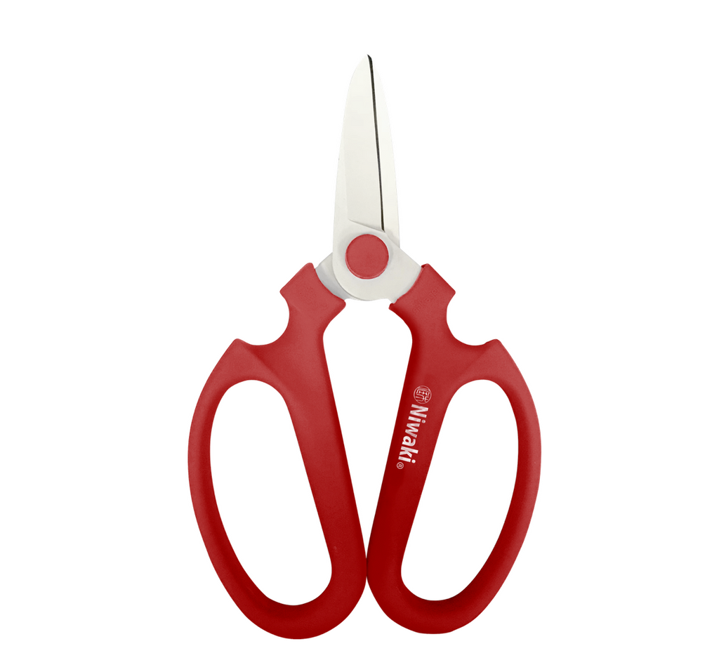 Brilliant floral scissors, combining the traditional ikebana style form with ergonomic resin moulded handles and fluorine coated blades. Perfect for cut flowers in the kitchen, greenhouse, conservatory and garden, and will handle a bit of woody pruning too if you end up off-piste.