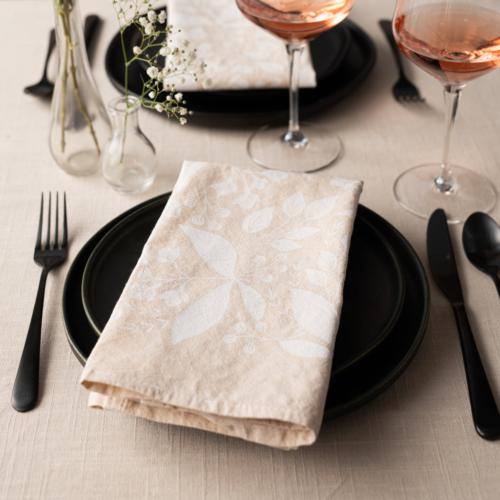 These 100% Cotton napkins feature original illustration hand drawn by designer, Susan Hazel Rich. Each designed and finished by hand in the Hazelmade studio, located in Kent, Ohio. Because of the fabric's natural processing, a minimal amount of colored threads may appear.