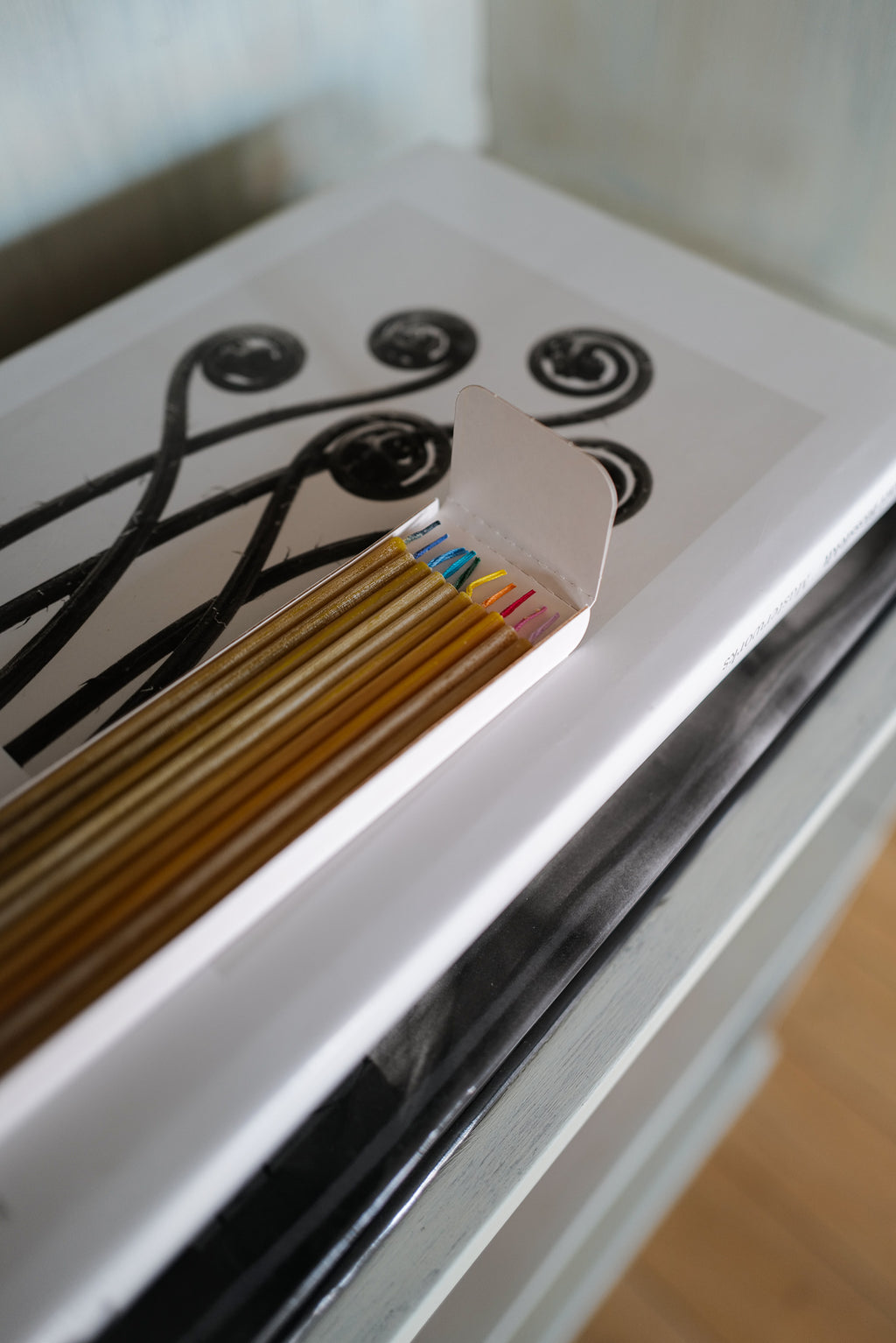 Thin and fine candles from pure beeswax with multicolored cotton wicks.