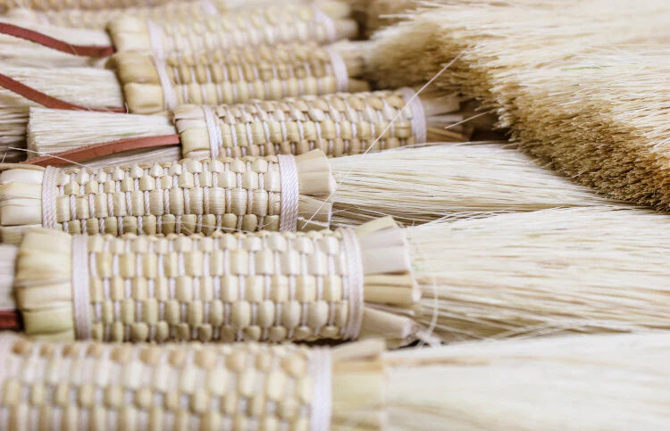 Soft soft Tampico makes this broom perfect for the tabletop or light dusting. The fibers of the broom is made from an agave plant, tied with a pale rose nylon and a traditional broomcorn handle.