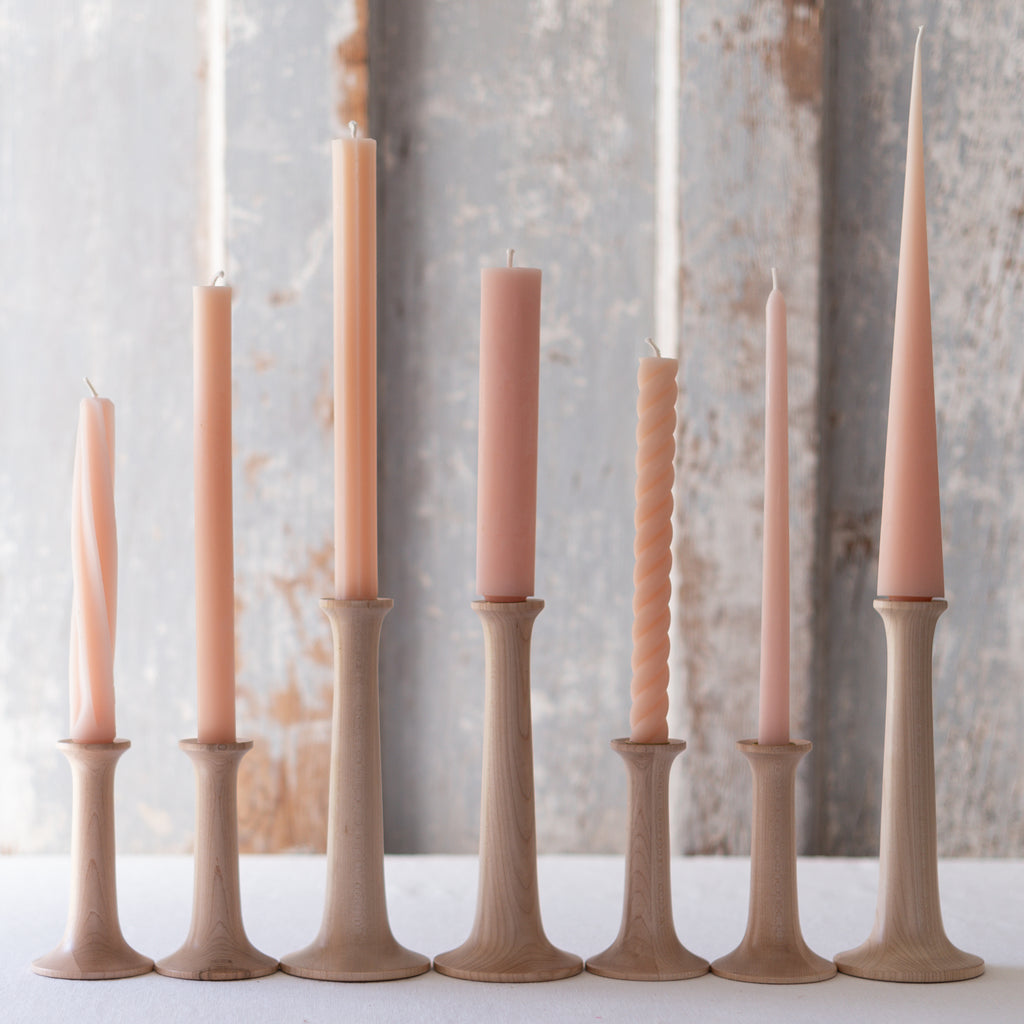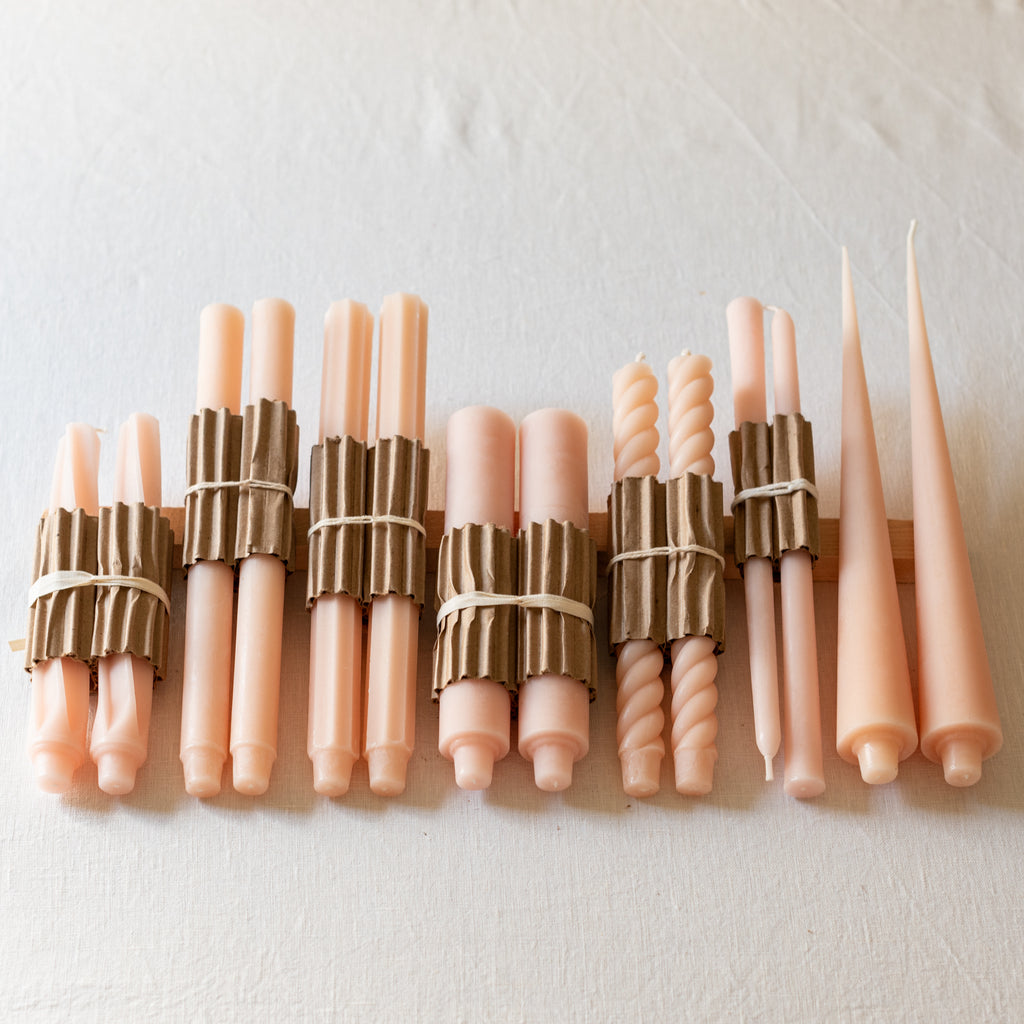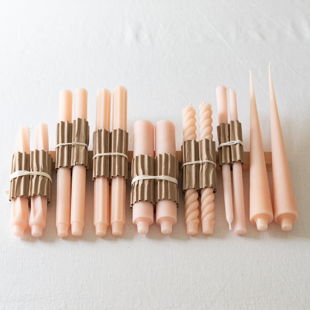 Check out our best-selling beeswax taper candles in blush. Each candle is hand-poured and individually finished in New York State. They are lovingly made from 100% pure North American beeswax. Sold in pairs.