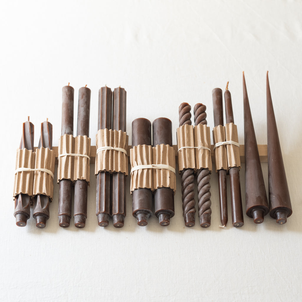 Our best selling Taper Candles, in Espresso. Each candle is hand poured and individually finished in New York State. Lovingly made from 100% pure North American beeswax. Sold in pairs.