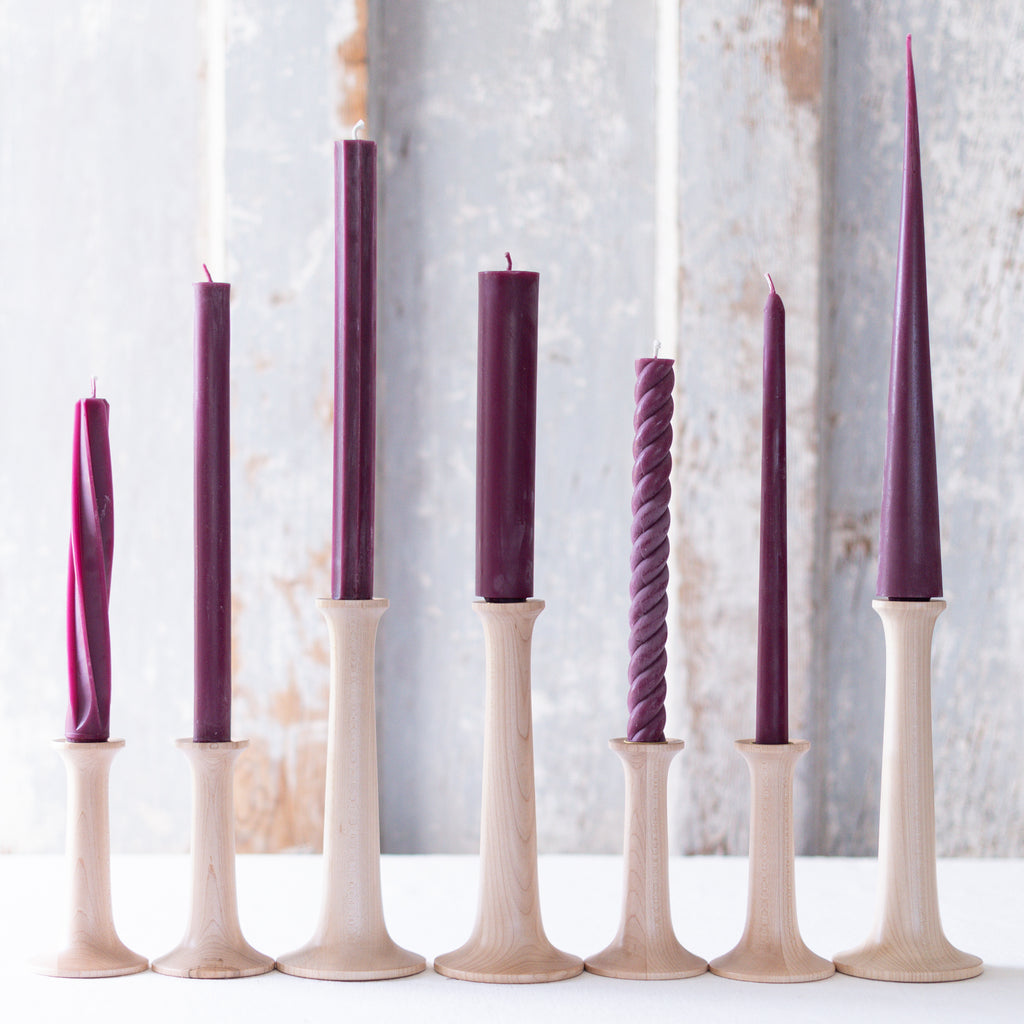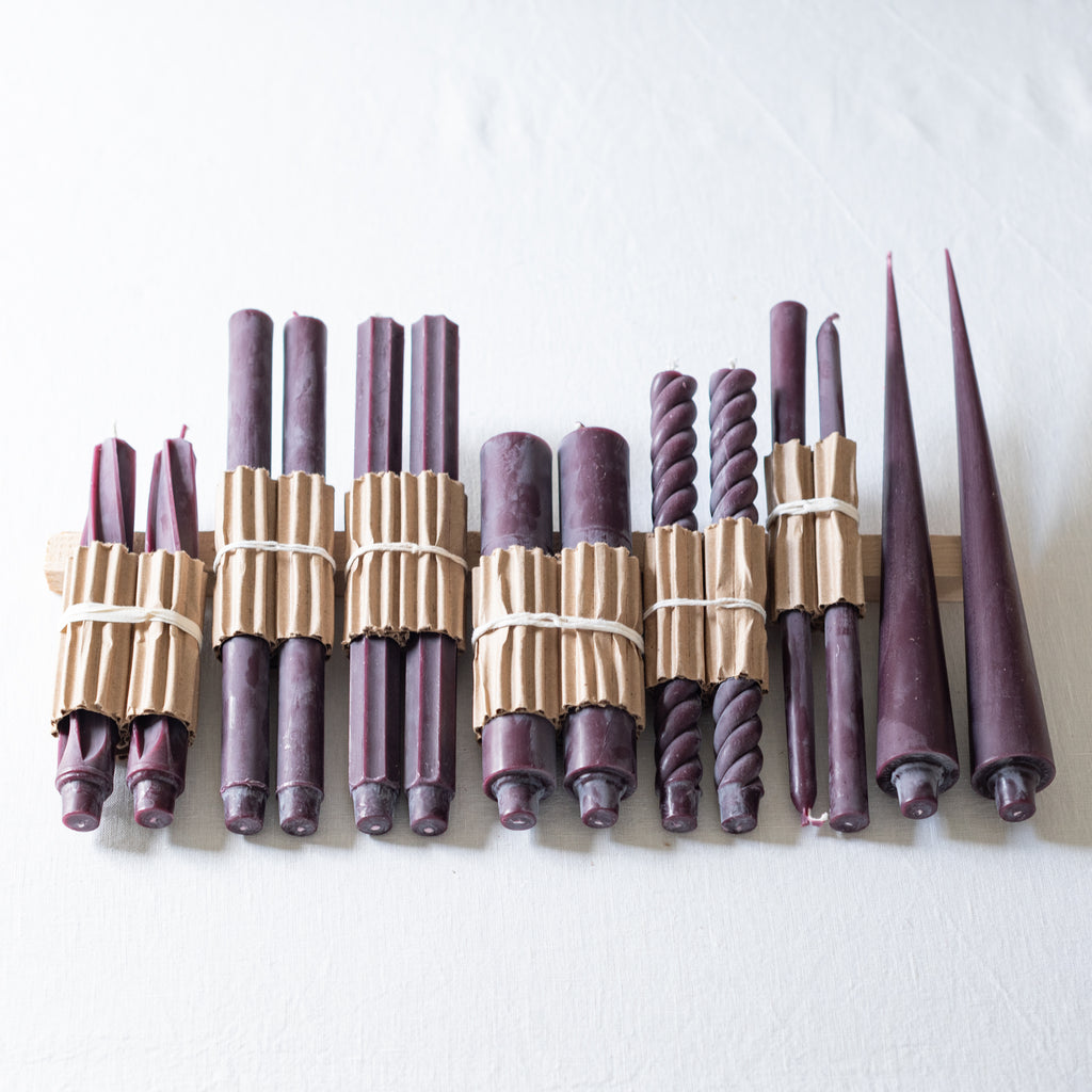 Our best selling Taper Candles, in Sangria. Each candle is hand poured and individually finished in New York State. Lovingly made from 100% pure North American beeswax. Sold in pairs.