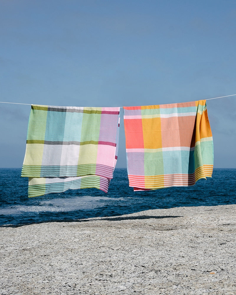 Designed and individually woven on refurbished looms in Plettenberg Bay.