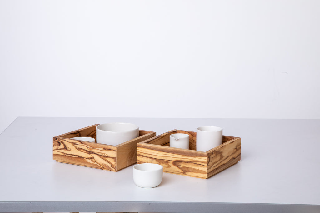 Crafted from fragrant olive wood with a unique grain reminiscent of fine marble, these trays are an elegant addition to any high-end gastronomy establishment. Whether used as a means of stylishly presenting drinks and snacks or as a practical storage solution or decorative element in office or living spaces, they offer both beauty and functionality. Thanks to the naturally occurring lignin and tannin in the wood, these trays are also antibacterial. Rest assured that we only source wood from mature trees that no longer produce fruit, ensuring that our production in Turkey does not impact local yield.